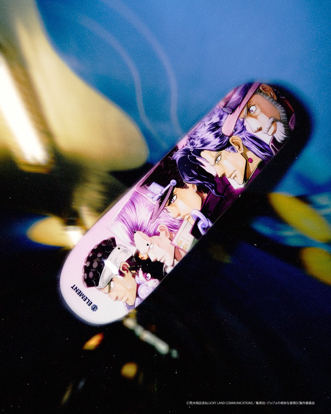 「ELEMENT SKATEABORDS(エレメントスケートボード)」が、アニメ「ジョジョの奇妙な冒険 スターダストクルセイダース」とのコラボレーションを発表。2025年10月に期間限定で一部先行予約を受付していたが、この12月19日(金)より数量限定にてELEMENTオフィシャルオンラインストア、および下記の取り扱い店舗にて一般発売が開始となります。