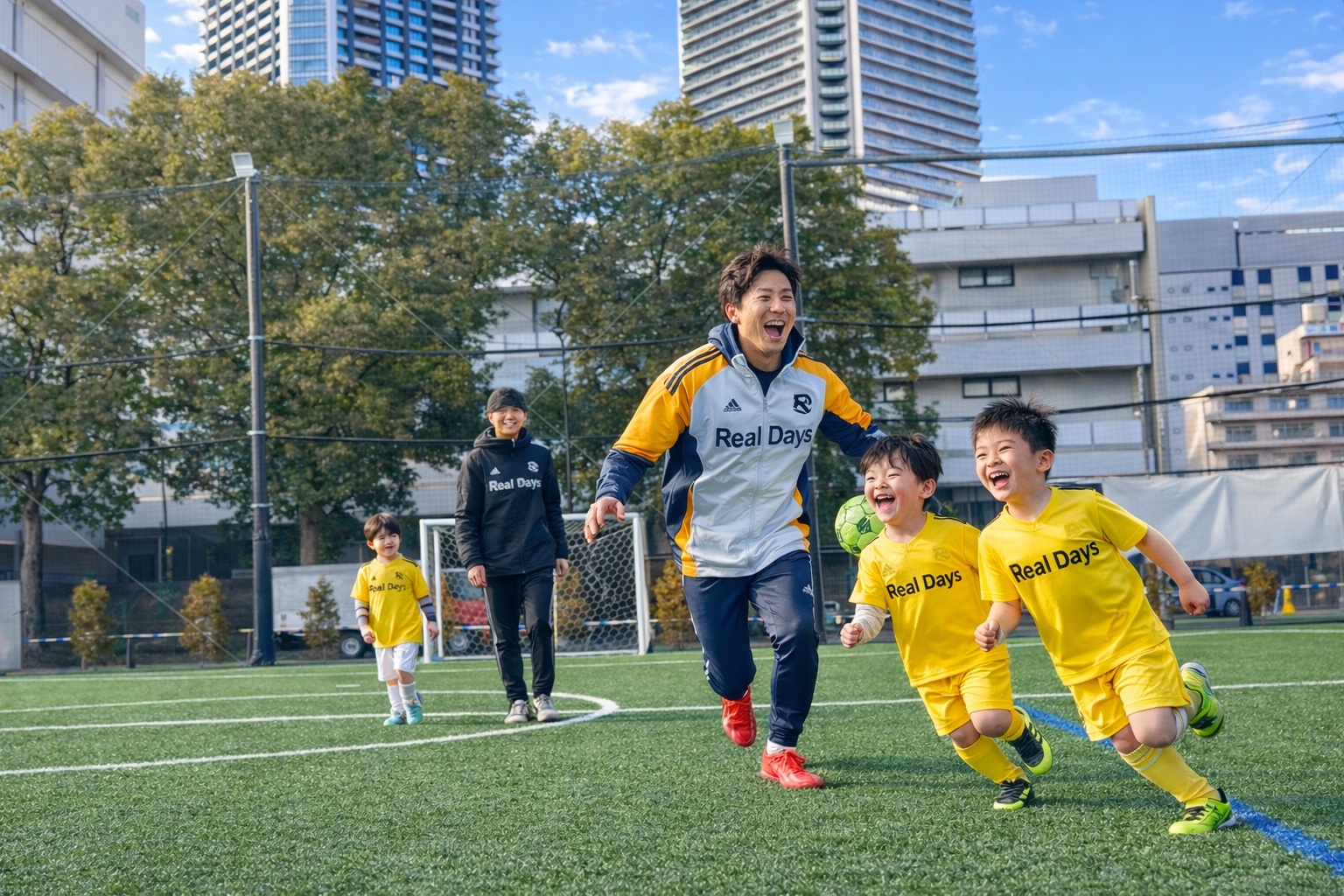 そこで私たちは、運営する晴海のクラブハウスとグラウンドを日中の時間帯に開放。「勉強」を強制するのではなく、まずは身体を動かし、多様な「体験」を重ねることで、「生きるエネルギー(活力)」を回復させることに特化したスクール『Real Days』を立ち上げました。