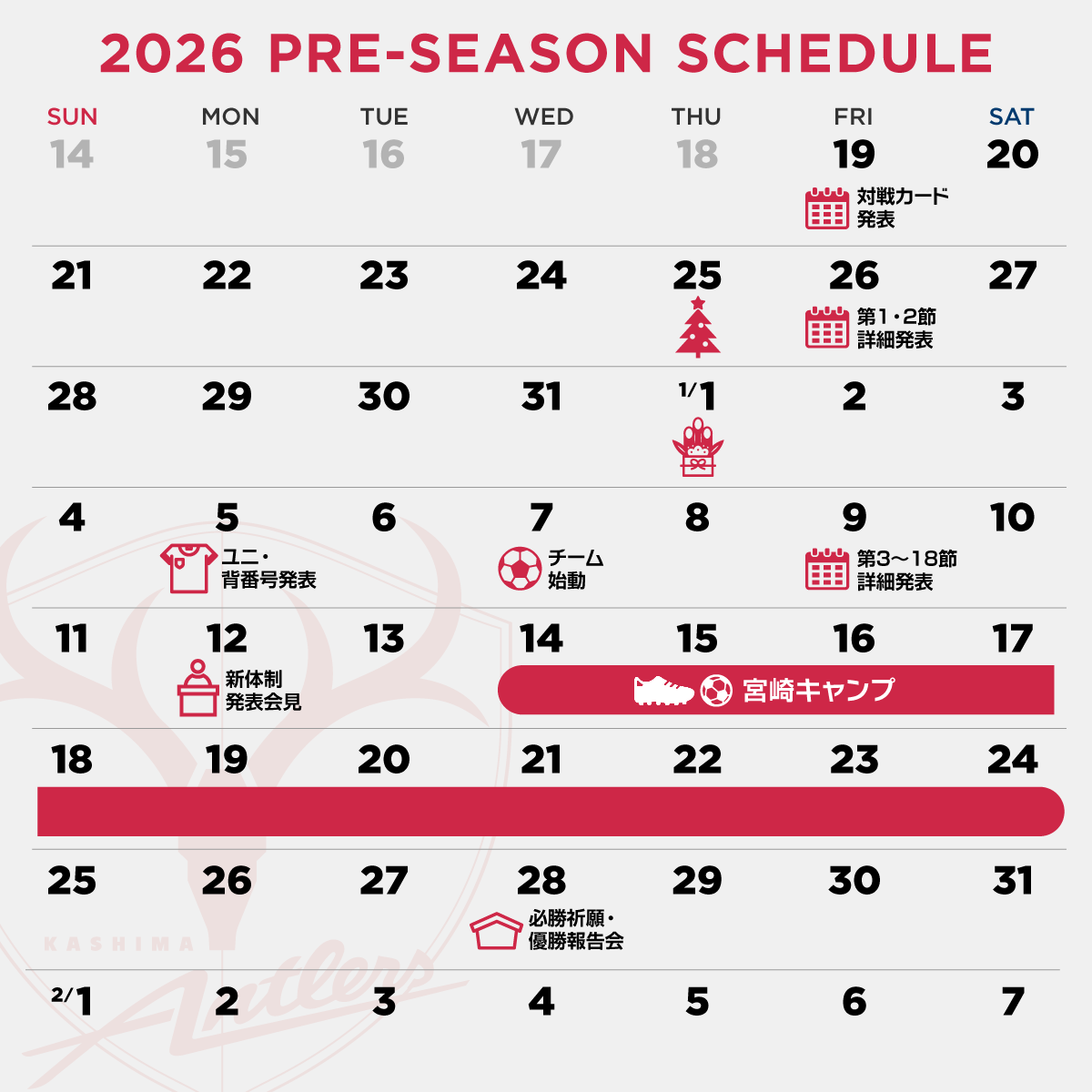 2025年末から明治安田J1百年構想リーグ(2026年2月~6月予定)開幕に向けた、クラブスケジュールをお知らせいたします。