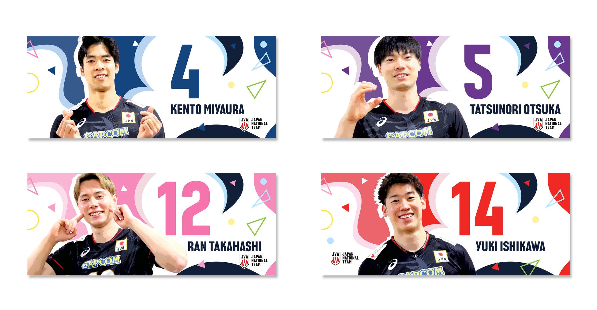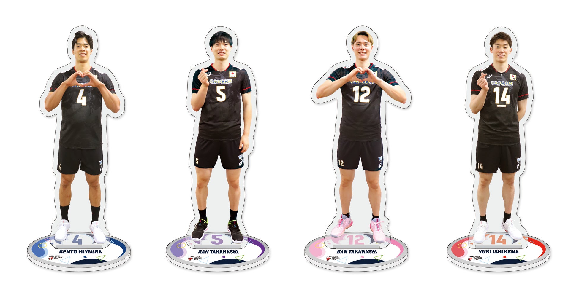 カプくじコラボ第6弾となる今回は、宮浦 健人選手・大塚 達宣選手・髙橋 藍選手・石川 祐希選手の4選手が登場! 9月に行われた壮行試合の写真と、カプくじ撮りおろし写真を使用したグッズを多数展開いたします。
