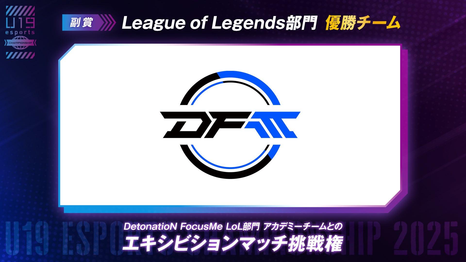 League of Legends部門の優勝チームは、LJLでも活躍する選手を多数輩出している「DetonatioN FocusMe Academy(DFM ACADEMY)」と対戦します。トップレベルの戦術と個人技がぶつかり合う特別試合となります。