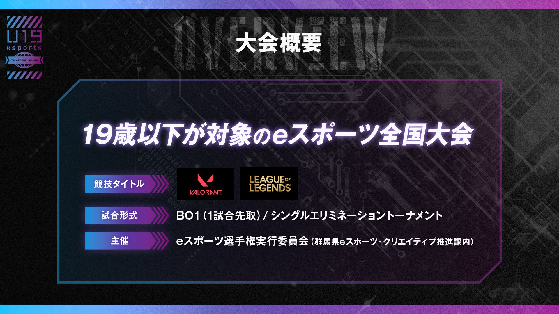 eスポーツ選手権実行委員会(群馬県)は、19歳以下を対象としたeスポーツ全国大会「U19eスポーツ選手権2025」を、2025年12月21日(日)に Gメッセ群馬 にて開催いたします。
