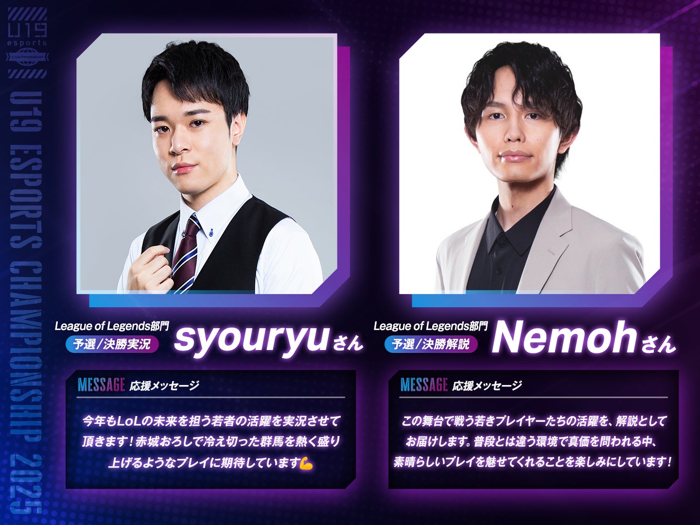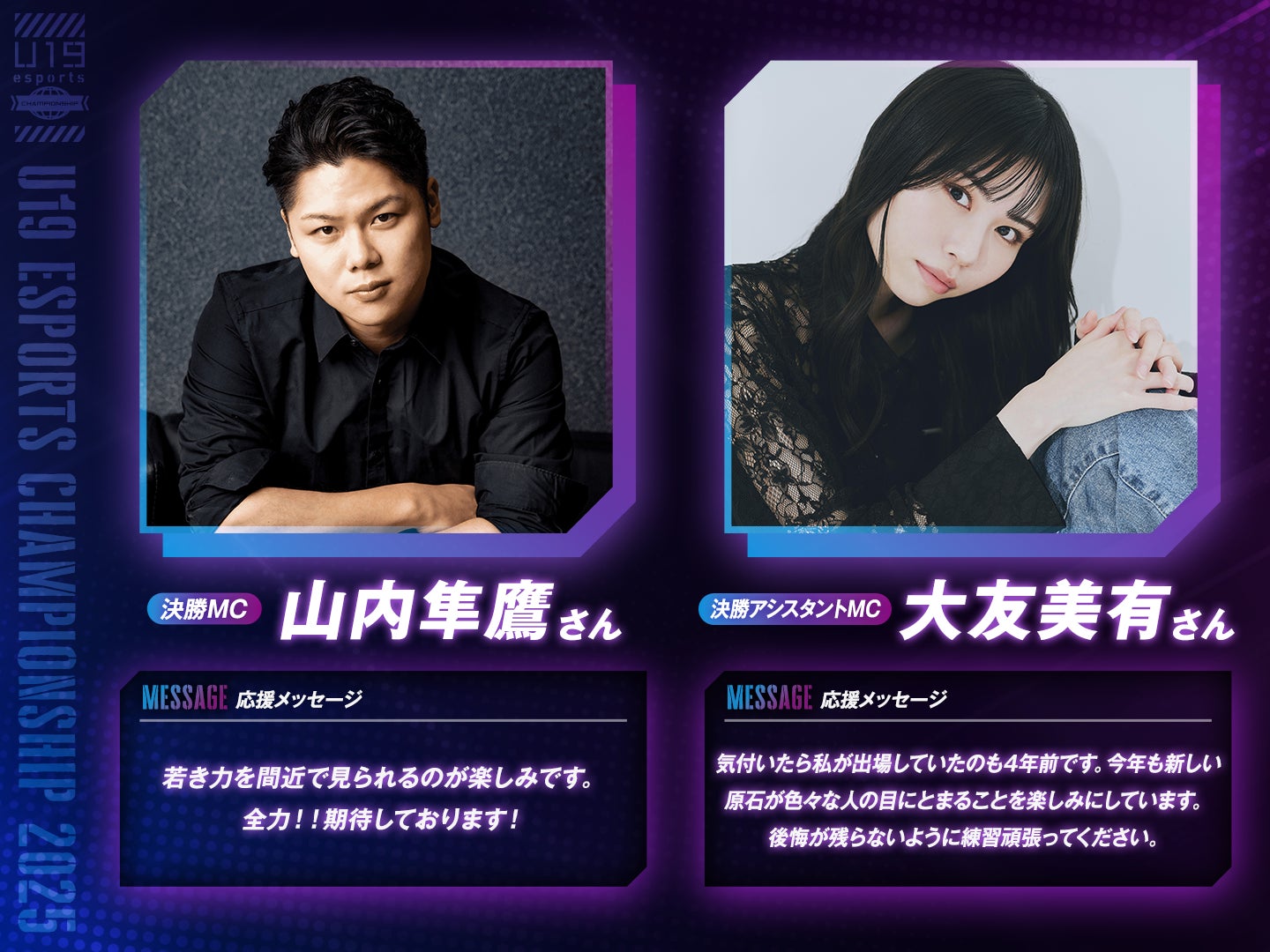 決勝戦は、以下の出演者・実況解説陣が大会を盛り上げます。