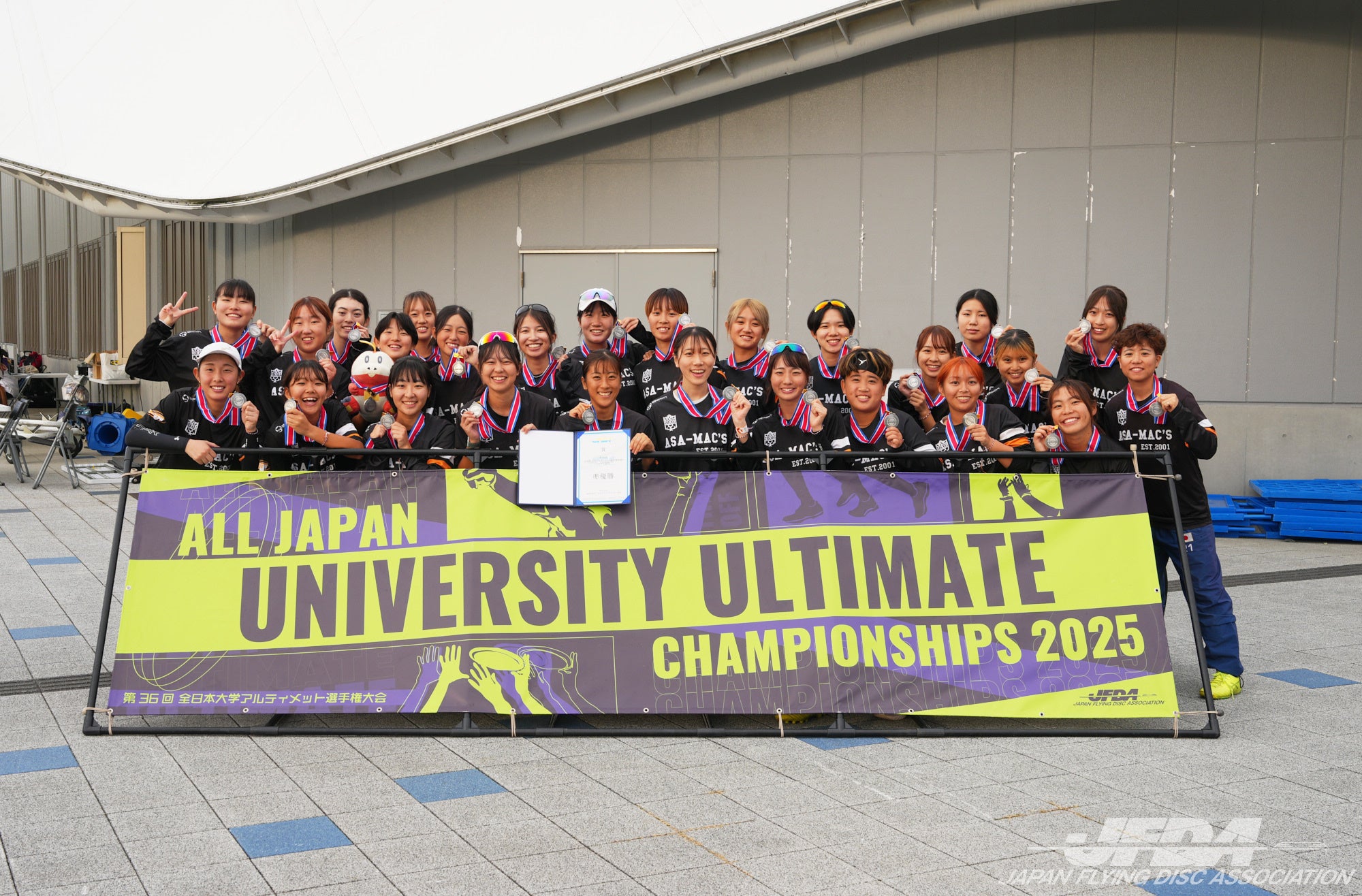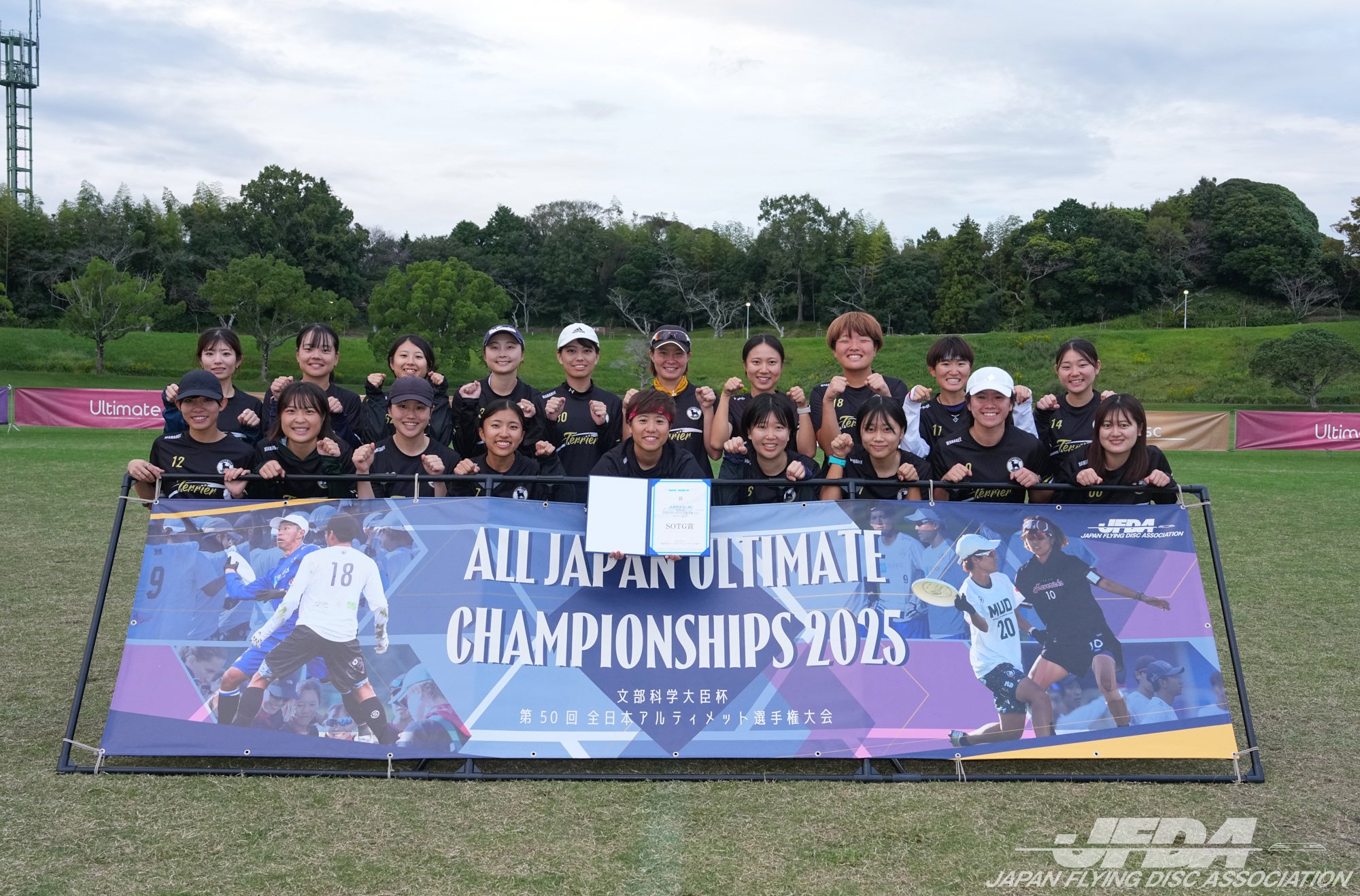 2025年10月11日(土)-12日(日)にJ-VILLAGE(福島県楢葉町)でオープン部門を、10月18日(土)-19日(日)につま恋リゾート彩の郷(静岡県掛川市)でウィメン部門をで開催した「文部科学大臣杯第50回全日本アルティメット選手権」および、11月1日(土)-2日(日)にJ-VILLAGEで開催した「第36回全日本大学アルティメット選手権大会」および、12月6日(土)-7日(日)につま恋リゾート彩の郷で開催した「第13回全日本ミックスアルティメット選手権大会」において、各区分の日本一が決定しました。