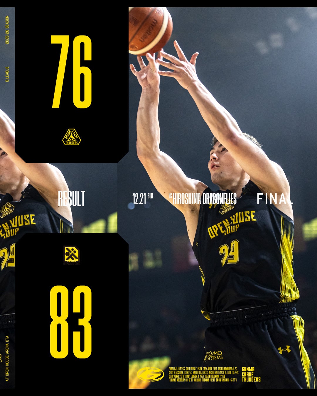 昨日は群馬らしいバスケットボールができてなかったというところで、苦しんでいたのですが、今日に関しては、オフェンス・ディフェンス共にうまくいっていたと思います。 広島の方がタフショットを決め切ったことによってこのような結果になったと思います。