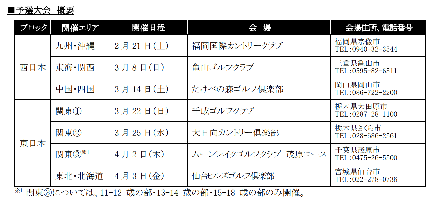 ・日程 / 会場 :2026年2月~4月に7会場で予選大会、2026年3月~4月に2会場で決勝大会を全てPGM運営ゴルフ場にて開催