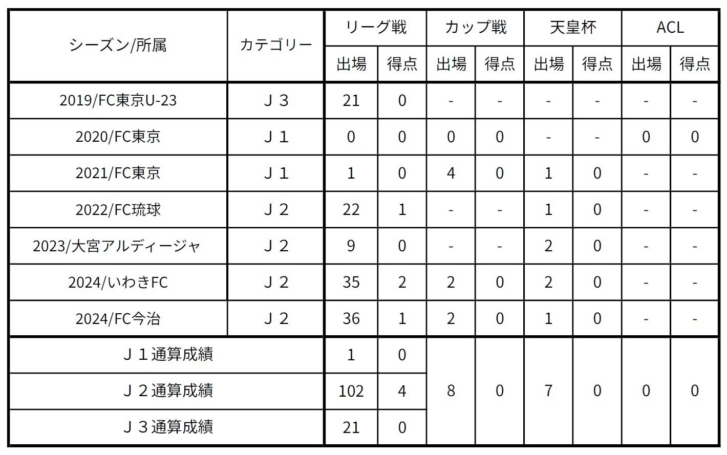 4シーズン、FC琉球、RB大宮アルディージャ、いわきFC、FC今治のために全力で戦ってきました。結果を出せないシーズンもありましたが、すべて悔いのないシーズンだったと思います。それぞれのチームで支えてくれた方々の想いを乗せて、必ずFC東京でクラブの目標であり自分の目標でもあるJ1リーグ優勝を達成したいと思います。