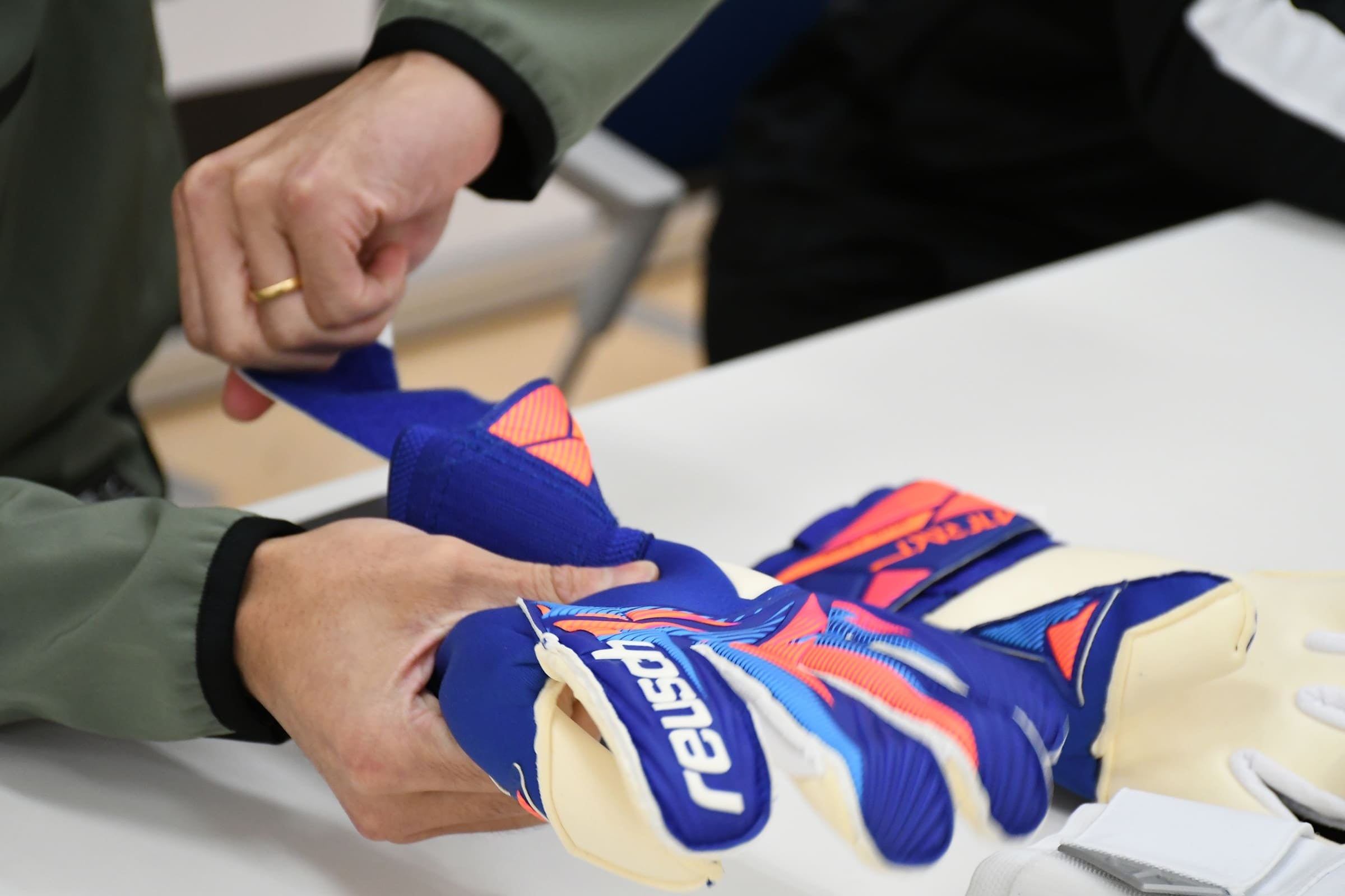 来シーズン、福井選手が着用するモデルは、ヨーロッパでは人気がある仕様ですが、日本では未展開でした。グローブの内側にも3Dラテックスドットを施した『Duoパーム』を福井選手が気に入り、2025年12月から日本でも本格展開が始まることに。ヨーロッパでは人気の仕様で、フィット感を重視するGKにはオススメのモデルです。