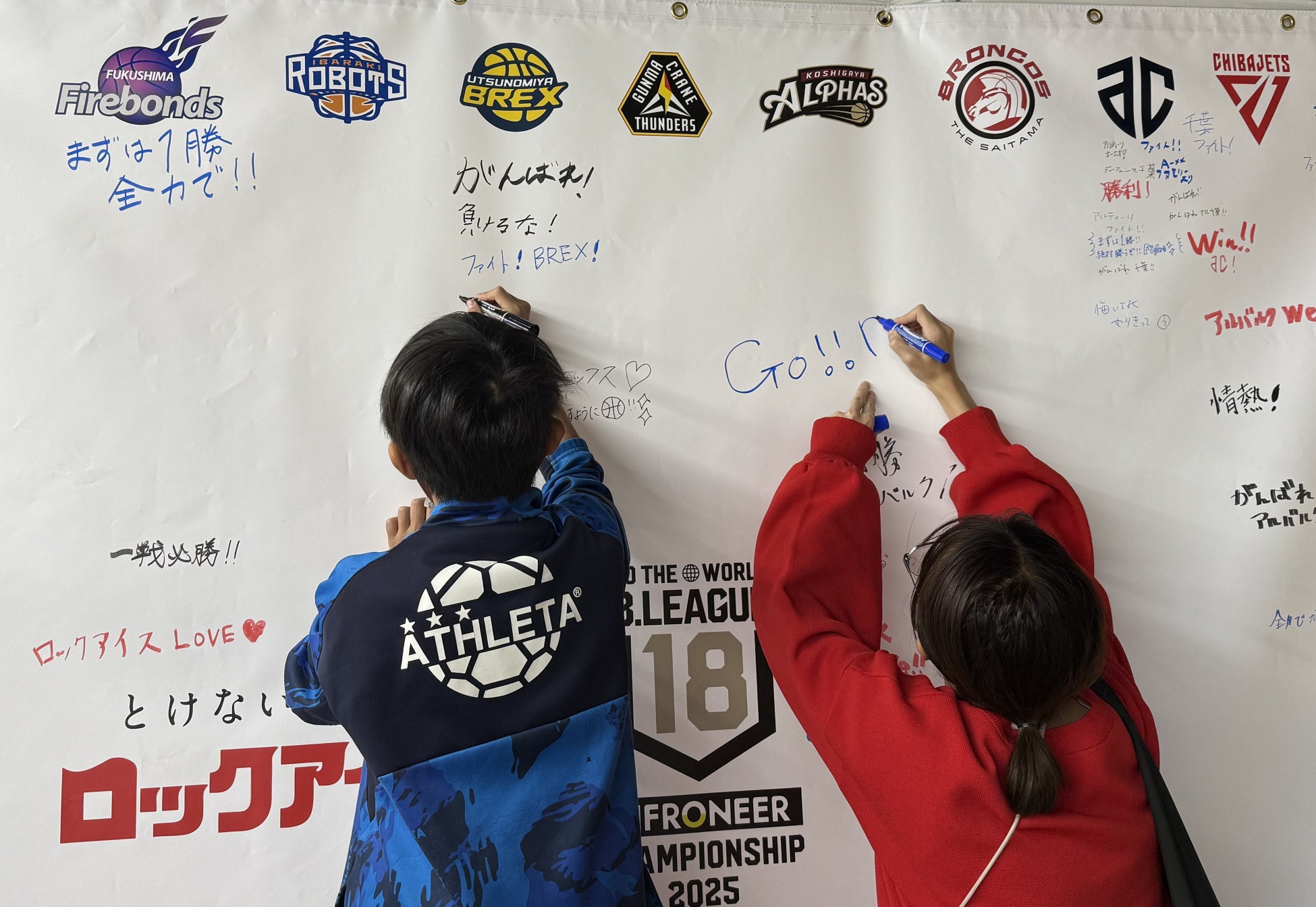 B.LEAGUE U18全40チームロゴ入り横断幕(横3m×縦2m)を設置し、選手・関係者・来場者全員にメッセージを書いていただき大会を彩りました。