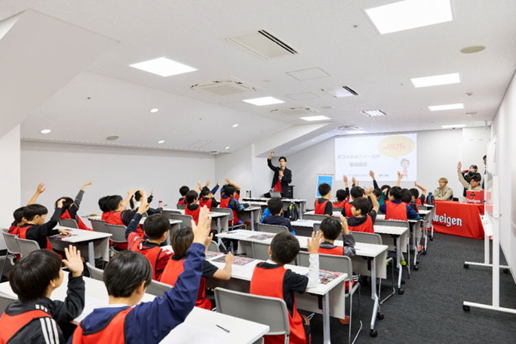 当日は、抽選で選ばれた小学4年生から6年生までの子どもたちとその保護者、40組/80名が参加し、サッカー教室や職業講話、選手サイン会&質問会、デジタルアートなどを体験しました。