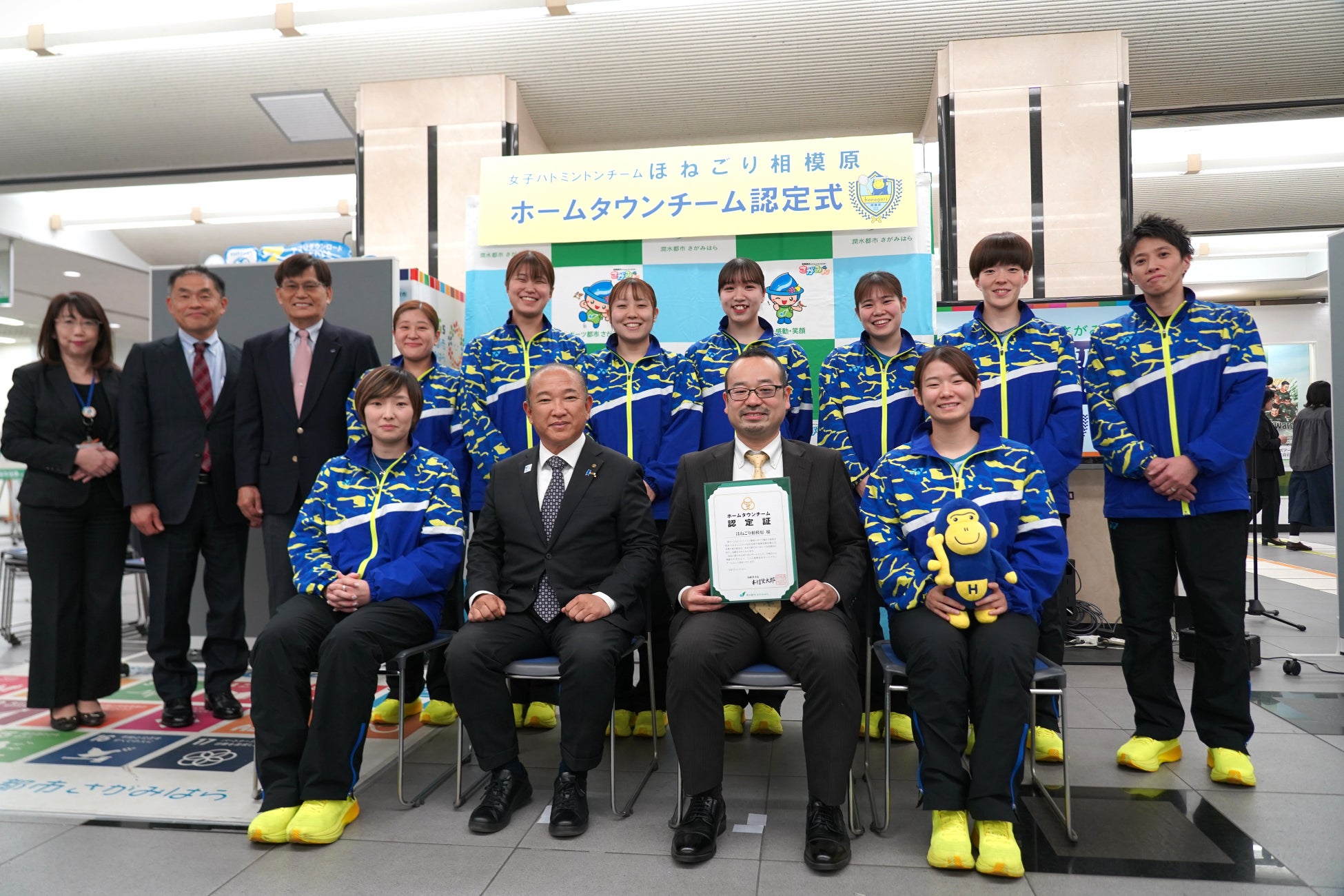 東京・神奈川・埼玉で鍼灸接骨院を54店舗経営する株式会社ほねごり(本社:神奈川県相模原市、代表取締役:阿部公太郎)が運営する女子バドミントン社会人実業団チーム「ほねごり相模原」は、2025年11月10日相模原市よりホームタウンチームとして認定され、12月23日に相模原市役所にて認定式が執り行われました。