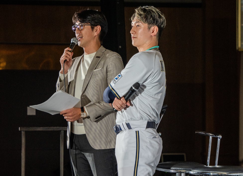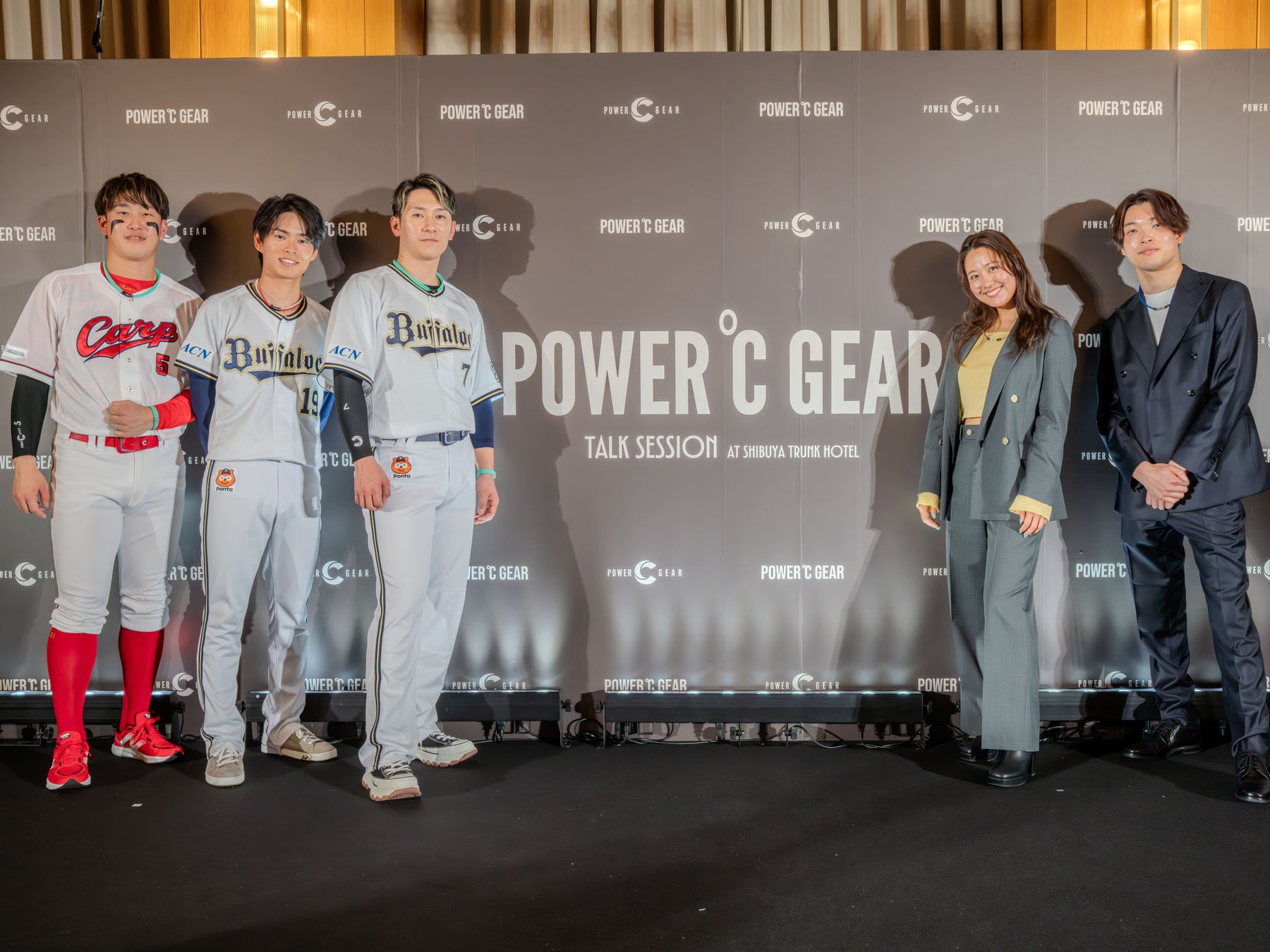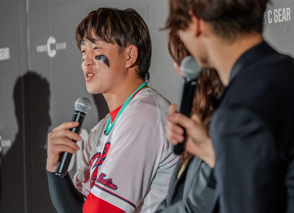 オリックス・バファローズ西川龍馬選手・山岡泰輔選手、広島東洋カープ小園海斗選手、名取鉄平選手(レーシングドライバー)、白波瀬海来選手(プロボディーボーダー)アンバサダー5名が登壇
