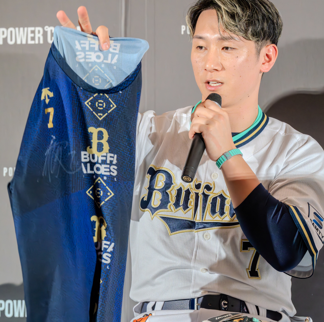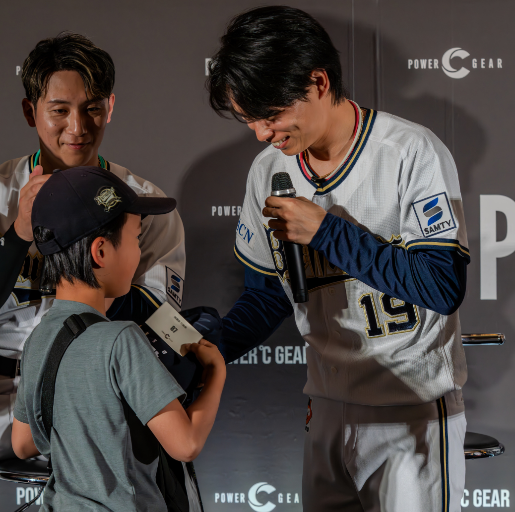 オリックス・バファローズ西川龍馬選手・山岡泰輔選手、広島東洋カープ小園海斗選手、名取鉄平選手(レーシングドライバー)、白波瀬海来選手(プロボディーボーダー)アンバサダー5名が登壇