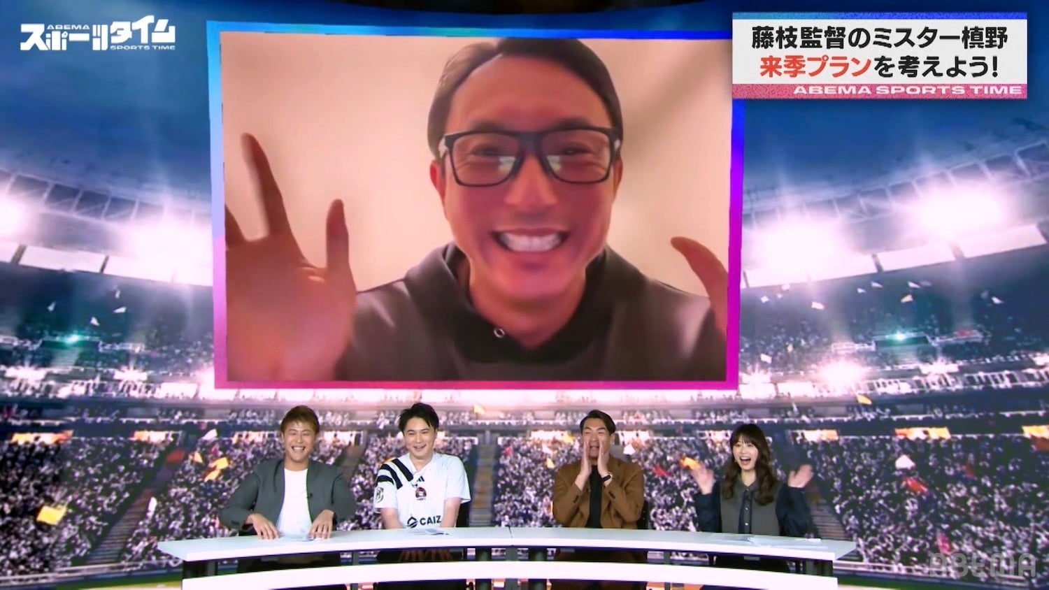 番組後半では、J2リーグのプロサッカーチーム・藤枝MYFCの監督に就任した槙野さんを祝い、「ミスター槙野の演出プランを考案」と題してさまざまな競技で実際に行われた試合中の演出を振り返りました。