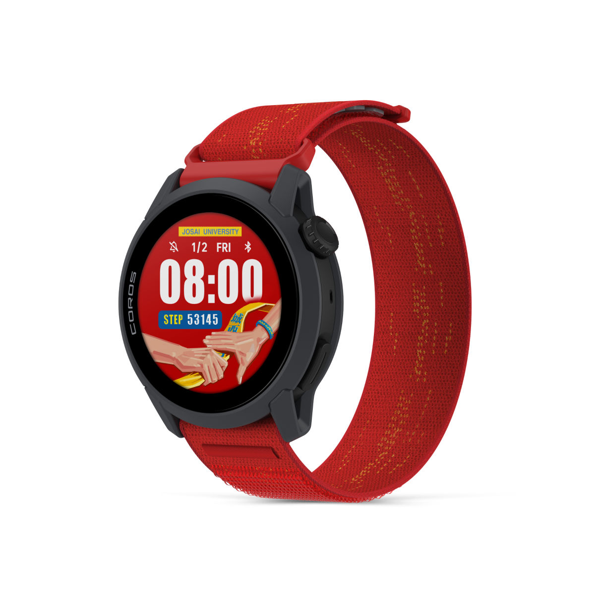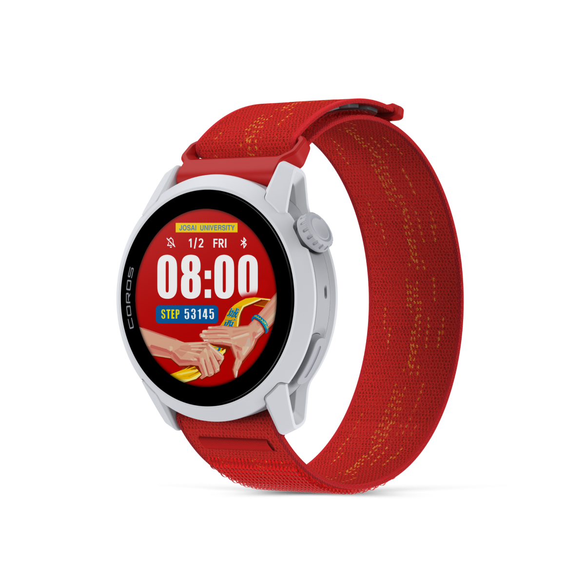 COROS PACE 4 Nylon Band Ekiden Editionは城西大学男子駅伝部のチームカラーであるレッドカラーがベース。また、イエローの襷にインスパイアされたラインが、箱根路を駆け抜けるランナーのスピード感を表現しています。さらに、バンド背面の一端には「箱根駅伝」公式角ロゴが、もう一端には「第102回箱根駅伝出場記念」「城西大学」の文字が刻まれ、チームスポーツならではの熱狂や文化継承など、様々な想いがこのバンドに込められています。