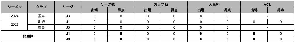 【サッカー歴】松茂 FC→徳島ヴォルティスジュニアユース→徳島市⽴⾼校→法政⼤学→福島ユナイテッド FC→川崎フロンターレ→福島ユナイテッド FC