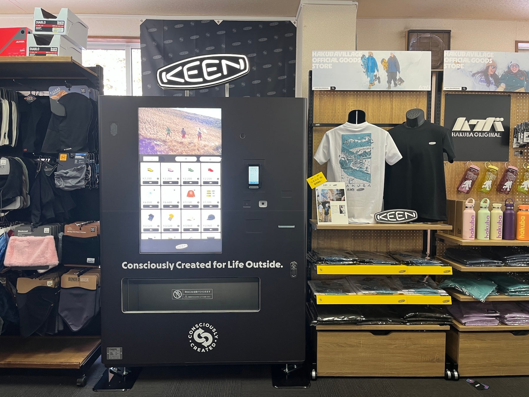 アメリカ ポートランド発のアウトドア・フットウェアブランドKEENの、ブランド史上初となる自動販売機がいいもりベースセンターに登場!「世界最小級のKEENストア」として、Tシャツやキャップ、キーホルダー、ステッカーなどの必要なアイテムがボタンを押すだけで手に入る体験をお届けします。さらにショップでは、アフタースキーに最適なシューズやウィンターブーツを販売します。