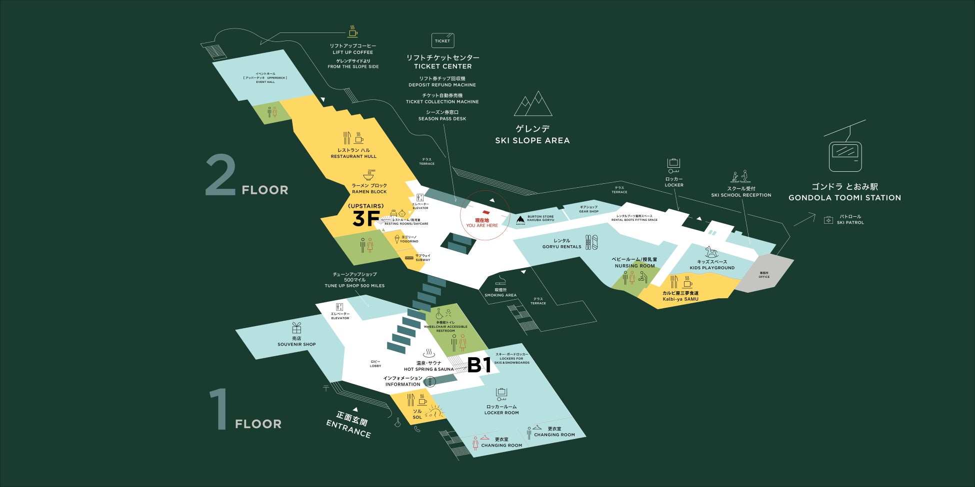 これまでエスカルプラザの外にあったチケットセンターが2Fの館内中央へ移動し、寒い中外にお並びいただく必要がなくなりました。これまで離れた館内にあったリフト券自動販売機も同じ場所に併設され、窓口購入・オンライン購入ともに分かりやすさと利便性が向上しました。