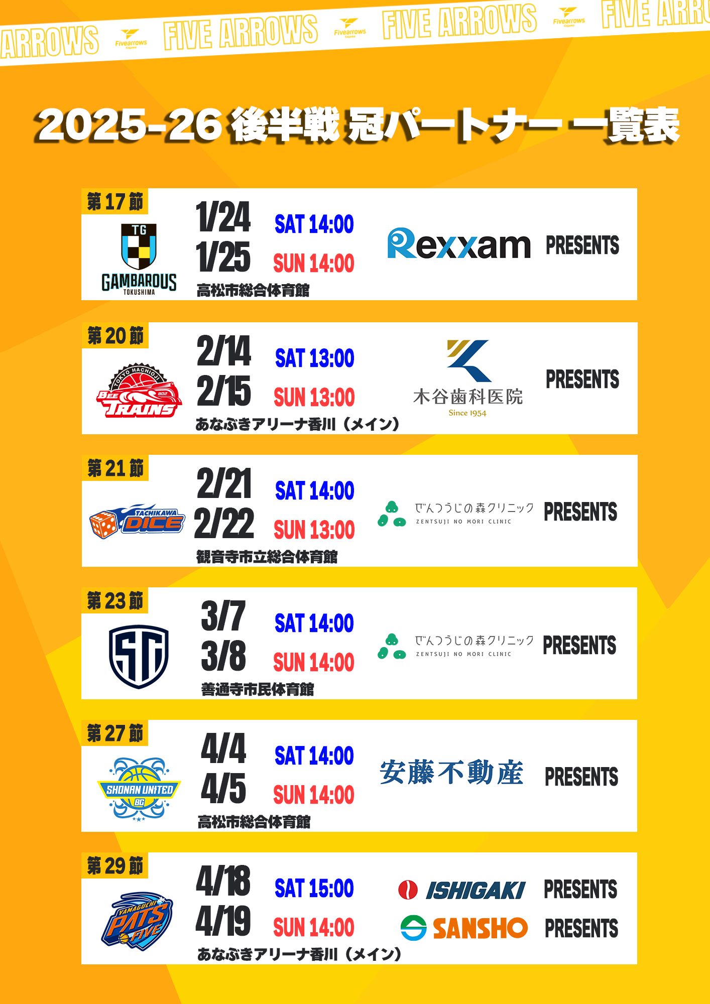 2025-26シーズン ホームゲーム後半戦の冠パートナーが確定しましたのでお知らせします。