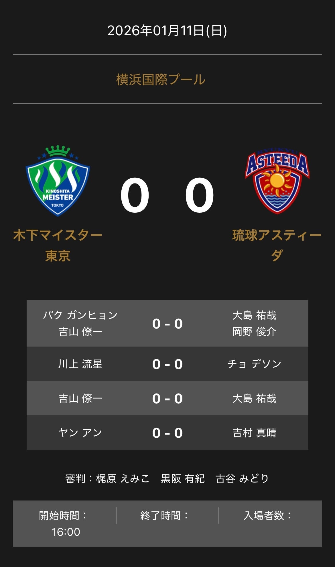ノジマTリーグ 2025-2026シーズン 公式戦 1月11日開催 「木下マイスター東京 vs 琉球アスティーダ」の対戦オーダーを発表いたします。