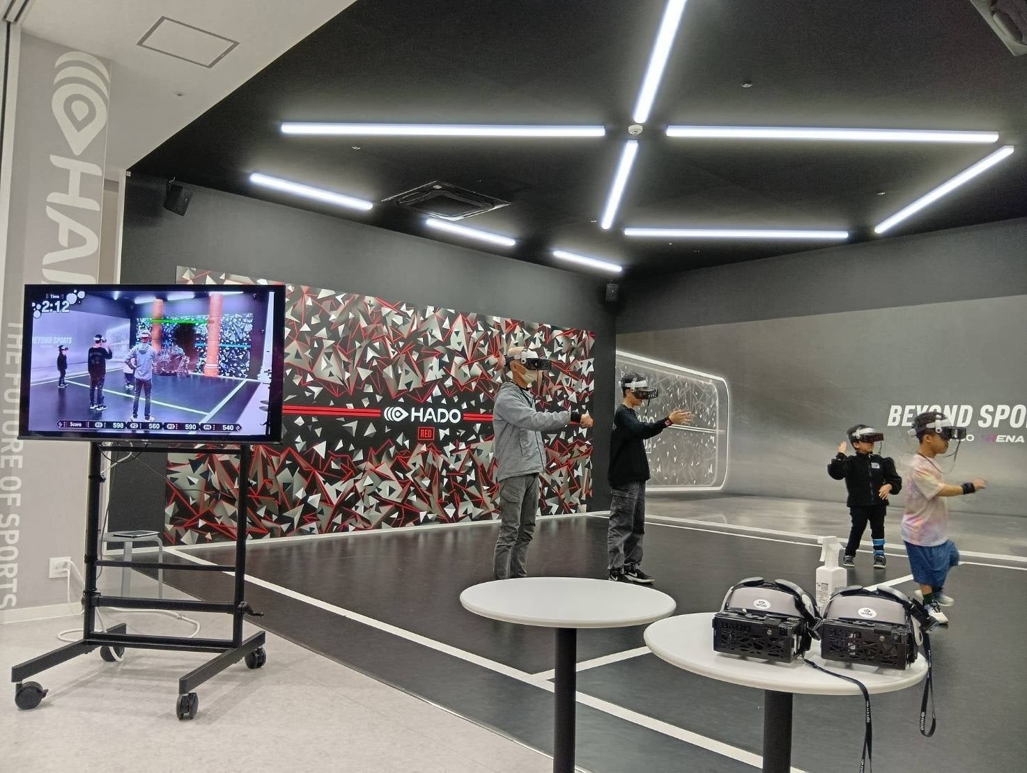 「HADO」は拡張現実(AR)技術を用いた次世代のスポーツアクティビティです。プレイヤーは専用のヘッドマウントディスプレイとアームセンサーを装着し、自分の腕の動きでエナジーボールを放ったり、シールド(盾)で身を守ったりしながら、対戦相手や仮想モンスターと戦います。激しい動きも可能ですが、座ったままや車椅子でのプレイも可能で、体力や身体状況に関わらず誰もが楽しめるスポーツとして注目されています。この特性により、従来のスポーツでは参加が難しかった方々にも、新たな体験機会を提供できます。