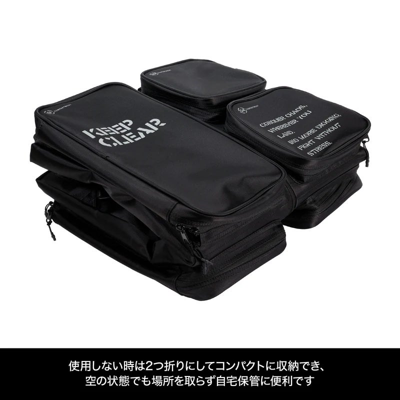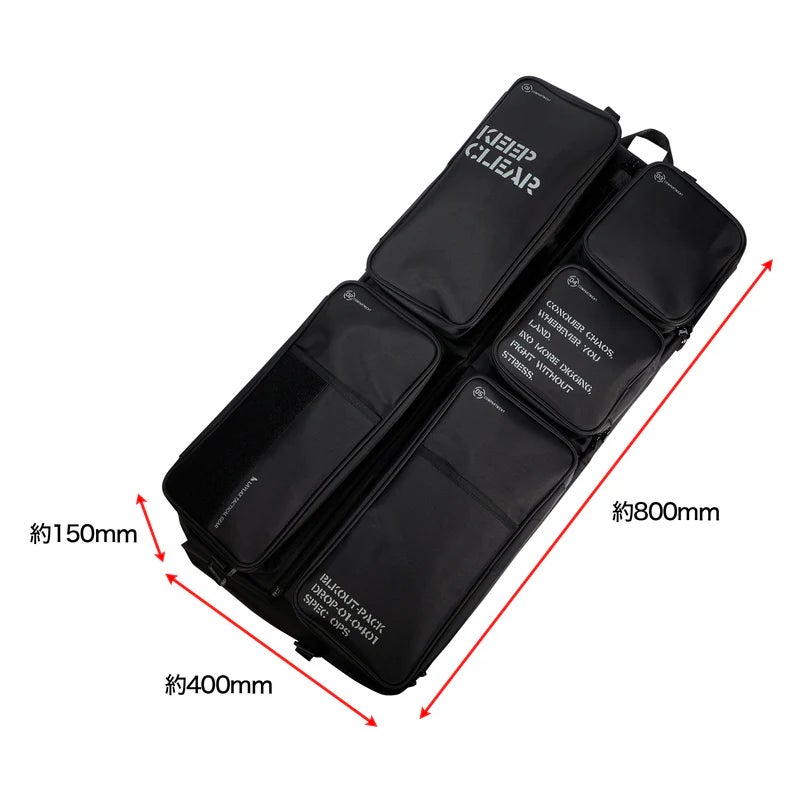 前面には大小5つの収納コンパートメントを配置し、バッテリー、ガス、工具、BBローダーなどの小物も機能的に整理できます。