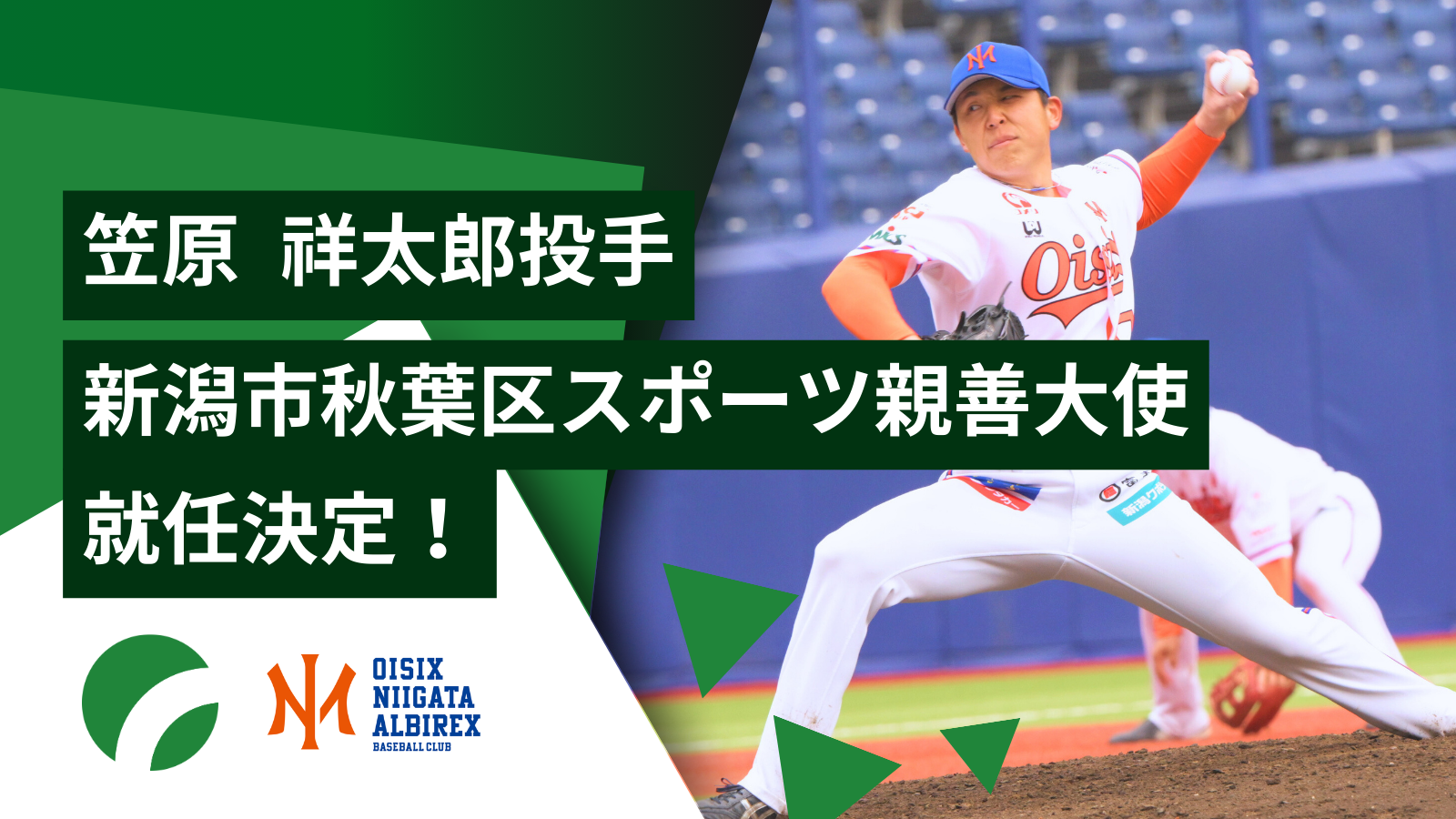今回、新たに新潟市秋葉区との連携を開始し、秋葉区の出身である笠原祥太郎選手が「新潟市秋葉区スポーツ親善大使」に就任することとなりましたことをお知らせいたします。