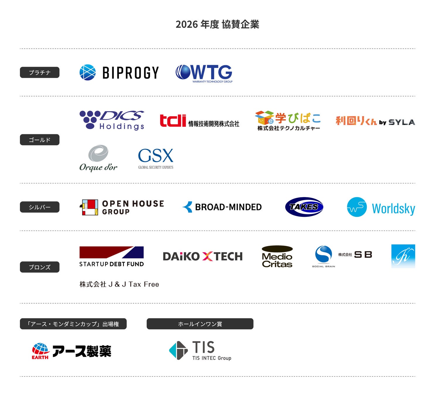 2026年大会は、下記の企業の皆様にご協賛いただき開催いたします(プラン内順不同)。