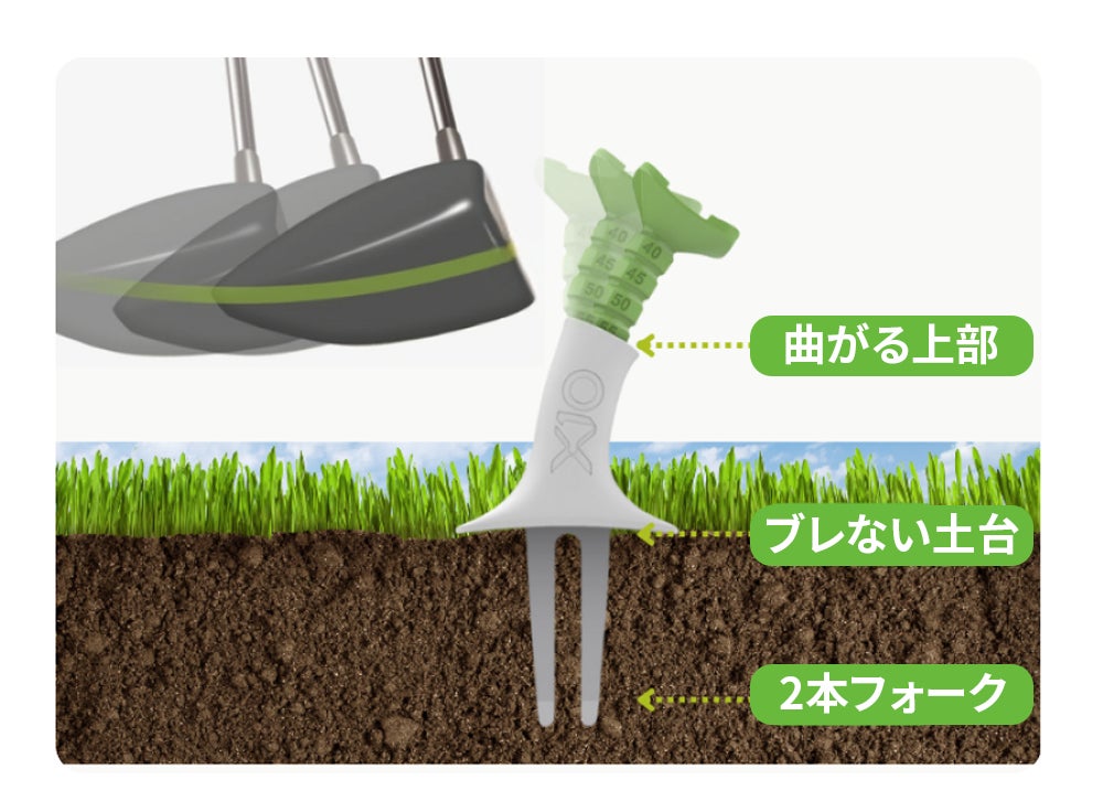 さらに、ティー軸に対して若干傾いてボールが立ちます。