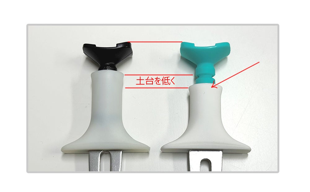 芝面に挿す土台部分は必要以上に深く刺さらない構造で上部で高さ調整ができます。