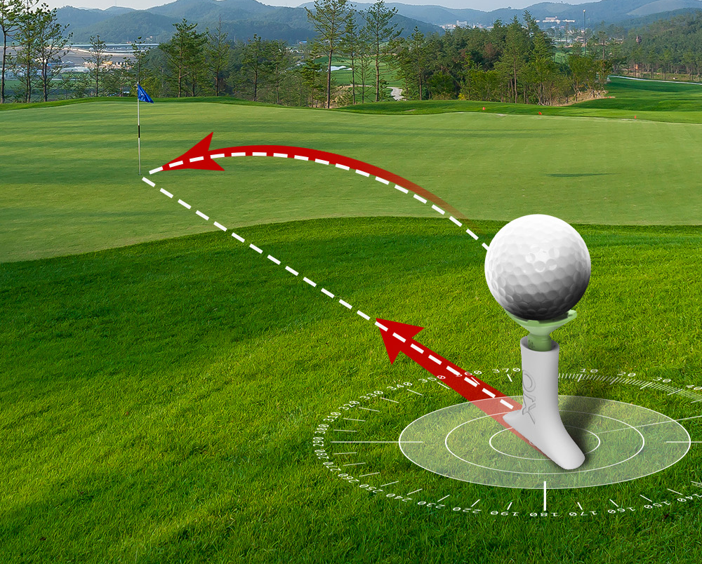高弾道側はドライバーヘッドとボールのインパクト角度を最適にし、より飛距離を伸ばす手助けを行います。
