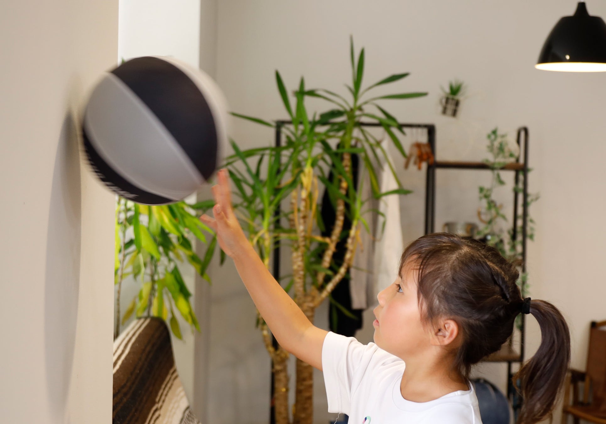 アパートやマンション、自宅リビングなど、音が気になる環境でも快適にドリブル練習ができるよう、静音性を徹底追求。内部素材には高密度ウレタンフォームを採用し、ドリブル時の打音を通常のバスケットボールと比較して大幅に低減。音を吸収しやすい構造なので、ご家族やご近所への配慮も万全です。