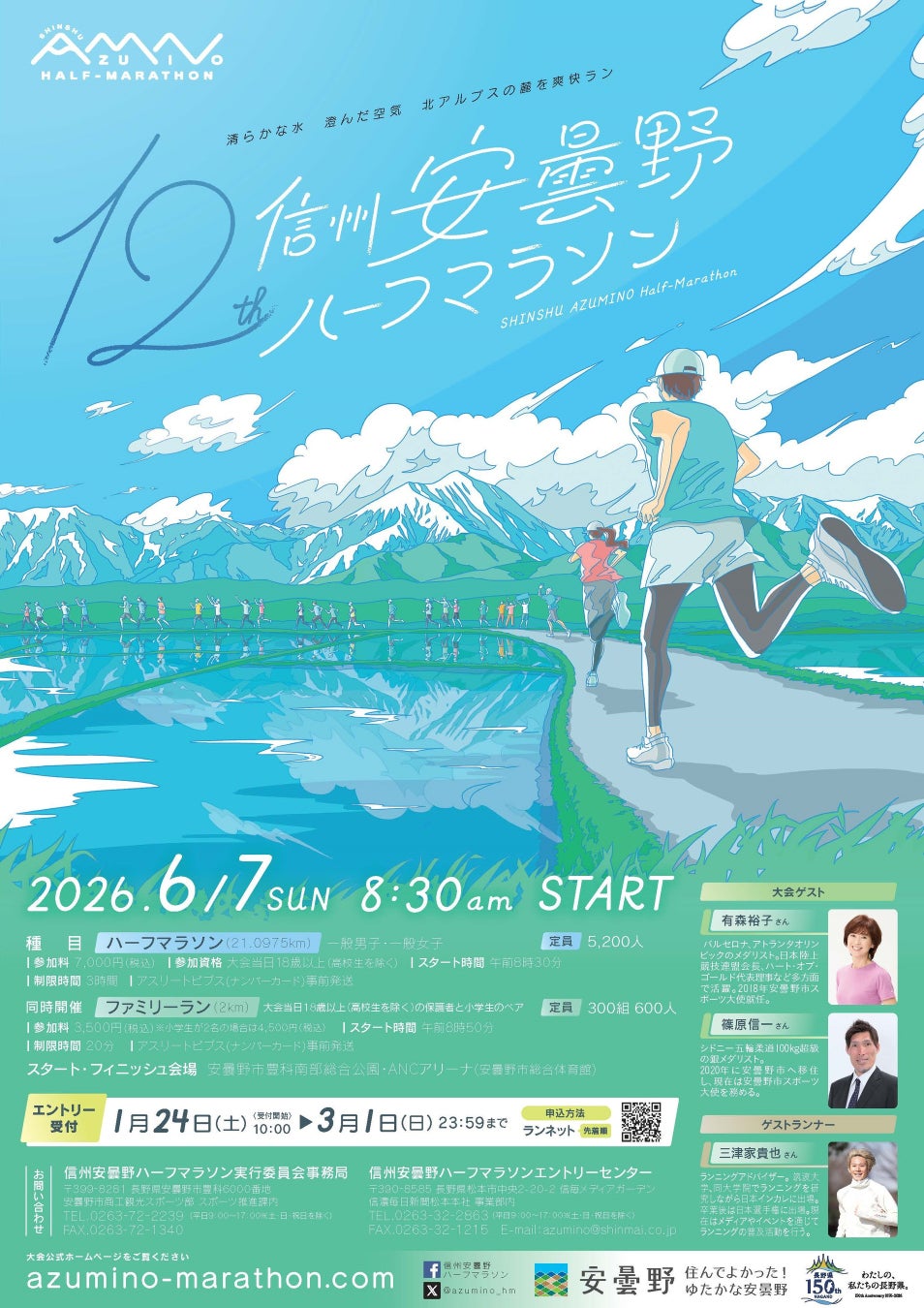 信州安曇野ハーフマラソン実行委員会(事務局:安曇野市)では、2026年6月7日(日)に第12回信州安曇野ハーフマラソンを開催します。