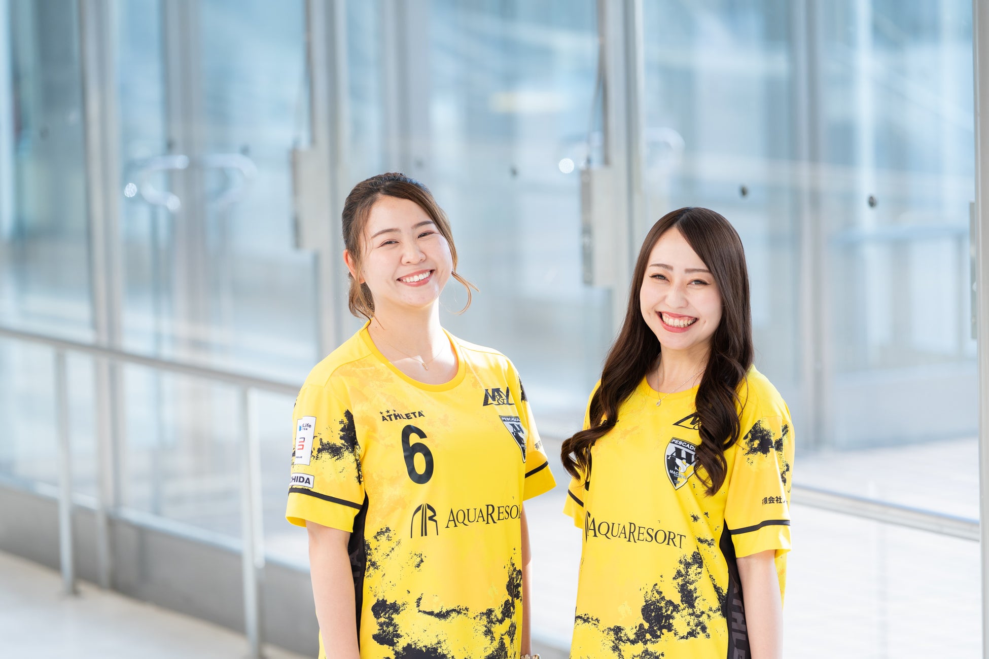 ASVペスカドーラ町田の試合会場には、選手だけでなく、試合中も会場を盛り上げるチアリーダーや、スタジアムMC、クラブナビゲーターさんがいます。スタジアムMCはスポーツ番組の実況アナウンスや解説者とは異なり、会場アナウンスに加え、会場のお客さんと一体となって試合を盛り上げる役割を担っています。また、クラブナビゲーターは会場内外でのトークショーやイベントでクラブと来場者をつなぐ存在として活躍しています。