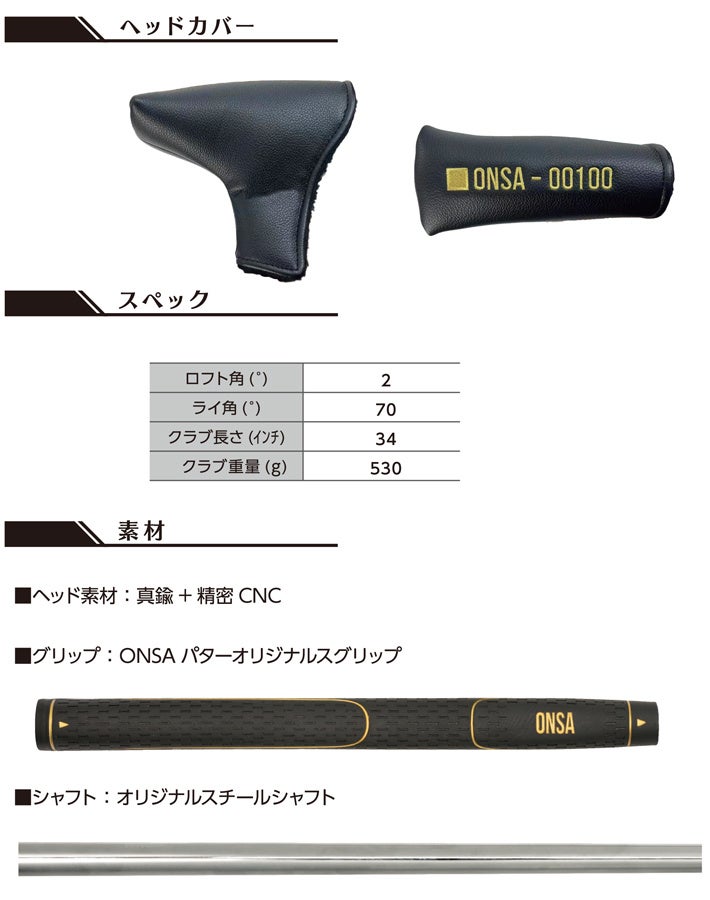 Lynx リンクス ONSA 00100 オンサ パター 音叉 真鍮完全削り出しパター 両面打ち可能