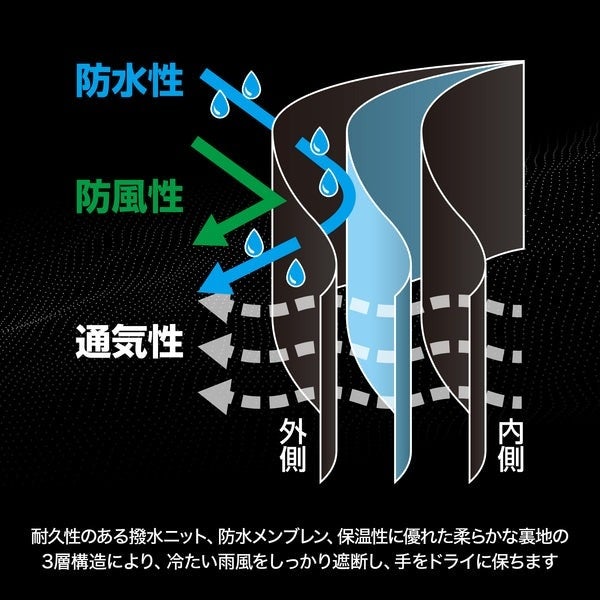 ニットでありながら、防水・防風・保温を両立するために採用したのが