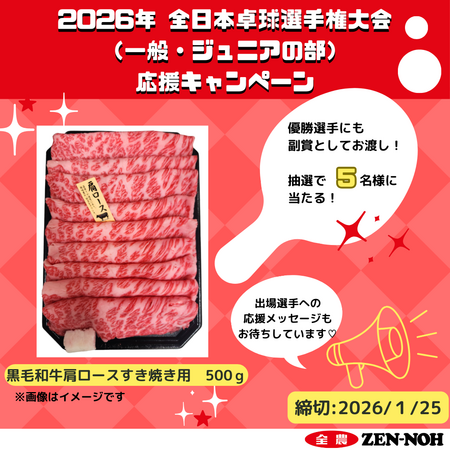 JA全農は、1月20日(火)から東京体育館で開幕する「2026年全日本卓球選手権大会(一般・ジュニアの部)」に協賛し、出場選手の皆さんを「ニッポンの食」で応援します。