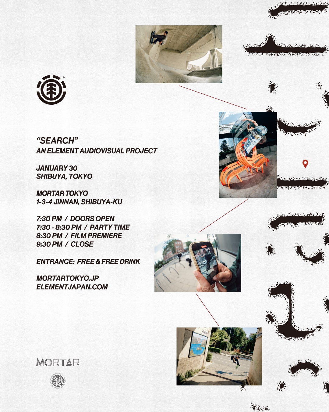スケートボードブランド「Element Skateboards(エレメント スケートボード)」は、12ヶ月に及ぶ世界各地への旅を記録した最新ビデオプロジェクト『Search』を発表いたします。