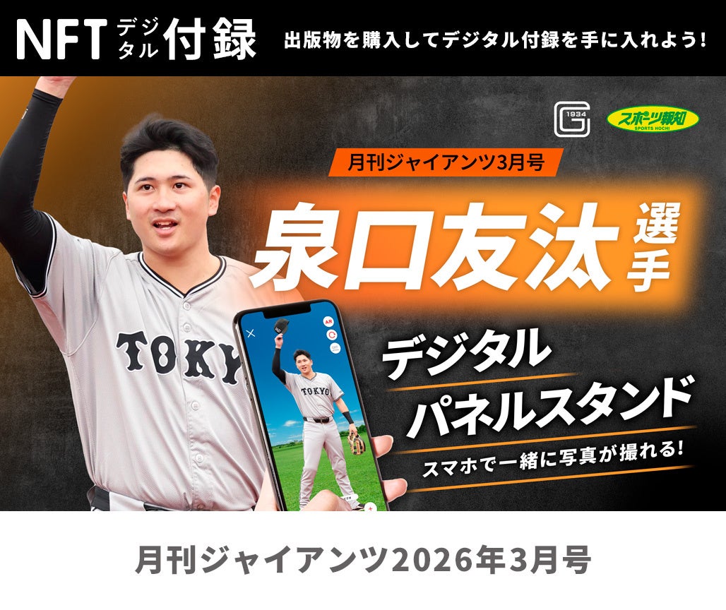 「スポーツ報知」を発行する報知新聞社(代表取締役社長・長谷川剛)は、読売巨人軍監修のファンマガジン「月刊ジャイアンツ」2026年3月号を1月23日(金)から順次、全国の書店、オンライン書店などで発売します。A4判88ページオールカラー、付録は泉口友汰選手のデジタルパネルスタンドです。書店でのお取り寄せ可能。お近くのYC(読売新聞販売店)でも注文を承ります。ECサイトの「ジャイアンツ公式オンラインストア」、「ショップ報知」、東京ドームの巨人軍直営グッズショップ「GIANTS STORE BALLPARK TOKYO」でも購入できます。