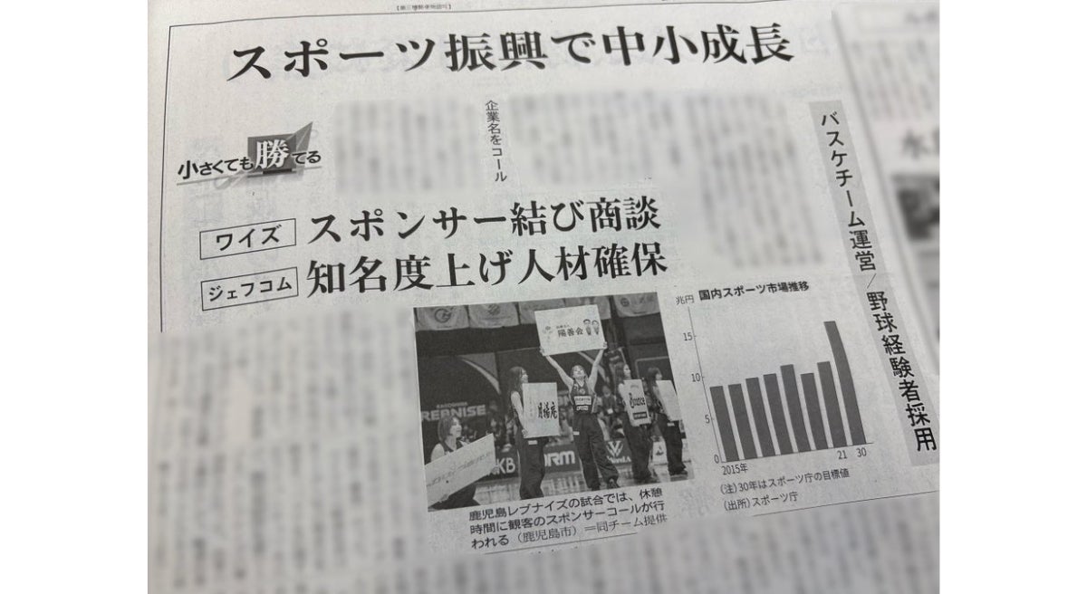 株式会社Wiz(本社:東京都豊島区、代表取締役社長:山﨑 俊、以下「Wiz」)は、2026年1月20日付の日本経済新聞(紙面)および、2026年1月19日公開の日本経済新聞WEB版において、プロバスケットボールクラブ「鹿児島レブナイズ」との取り組みが特集記事内で紹介されたことをお知らせします。