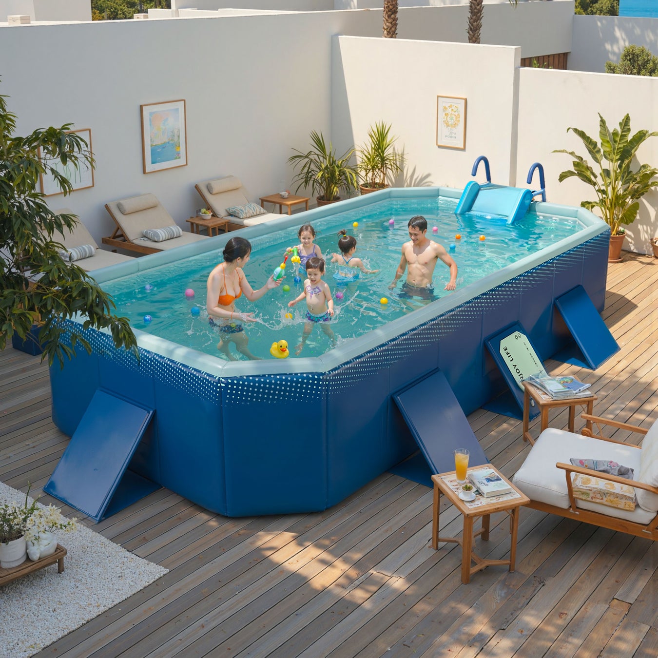 空気入れ不要、新発売折りたためる 大型 プールです。自立型で折り畳むことができ、すぐ使えて準備が楽チン!わざと組み立ても空気入れも不要で、拡張して使用できる折畳式プールです。