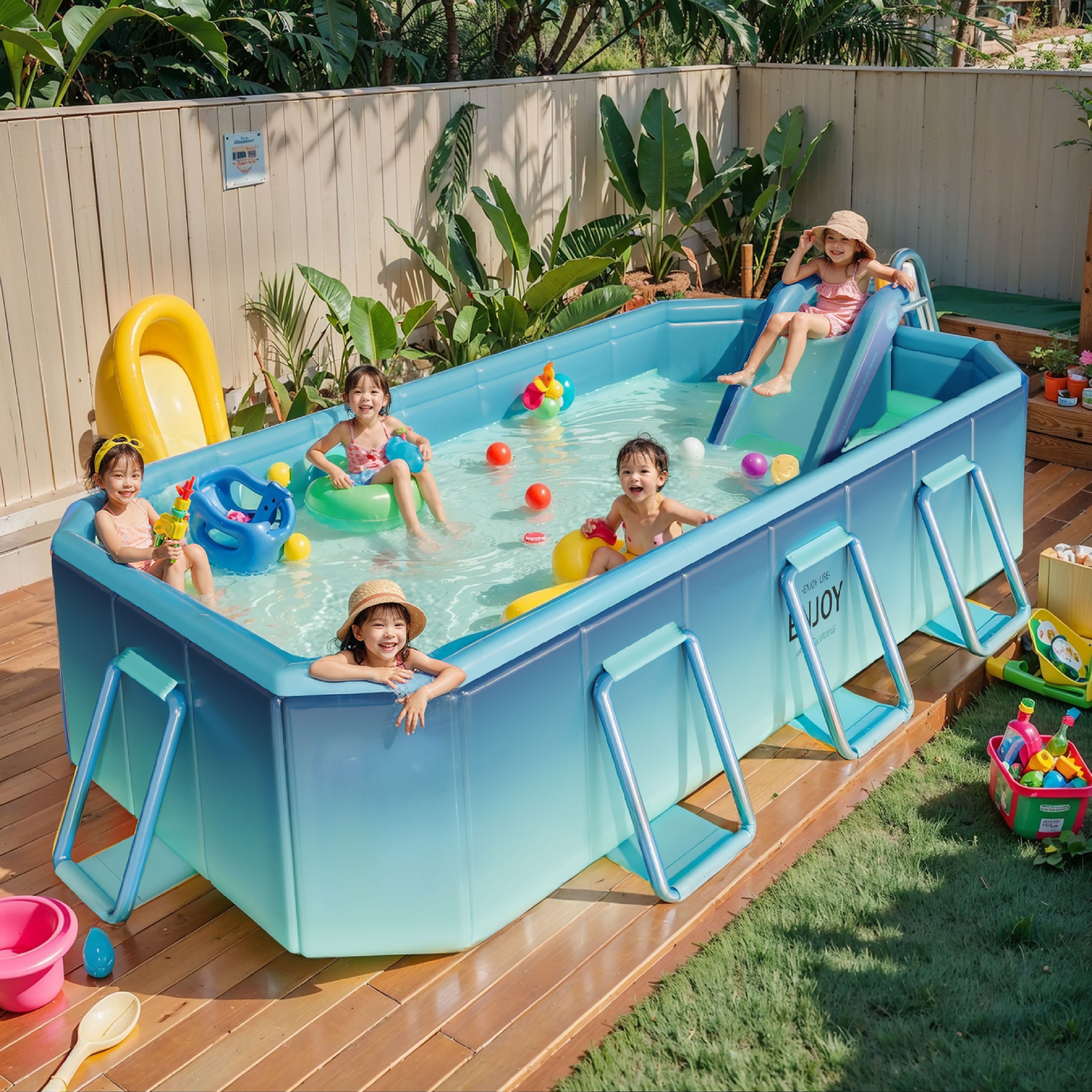 空気入れ不要、新発売折りたためる 大型 プールです。自立型で折り畳むことができ、すぐ使えて準備が楽チン!わざと組み立ても空気入れも不要で、拡張して使用できる折畳式プールです。