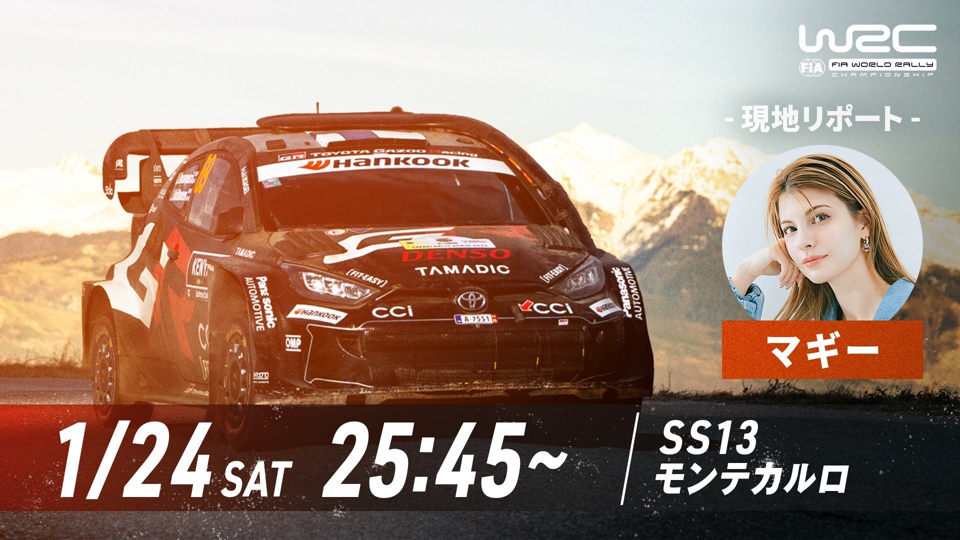 今回の『ラリー・モンテカルロ』はモナコ公国とフランスを舞台に開催され、日本が誇るTOYOTA GAZOO Racingのさらなる飛躍や、日本人唯一のドライバー・勝田貴元選手の活躍に期待が寄せられています。番組内では、TOYOTA GAZOO Racingのドライバーや監督への現地取材によるABEMAオリジナルインタビューを実施。さらに、マギーが歴史的名車に乗って、モンテカルロの街並みを試走する特別企画など車ファン必見のコンテンツを多数お届けする予定です。