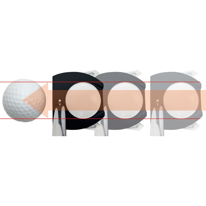 ヘッド上部の白い円がストロークの残像を残し、ボールの芯を打つことと