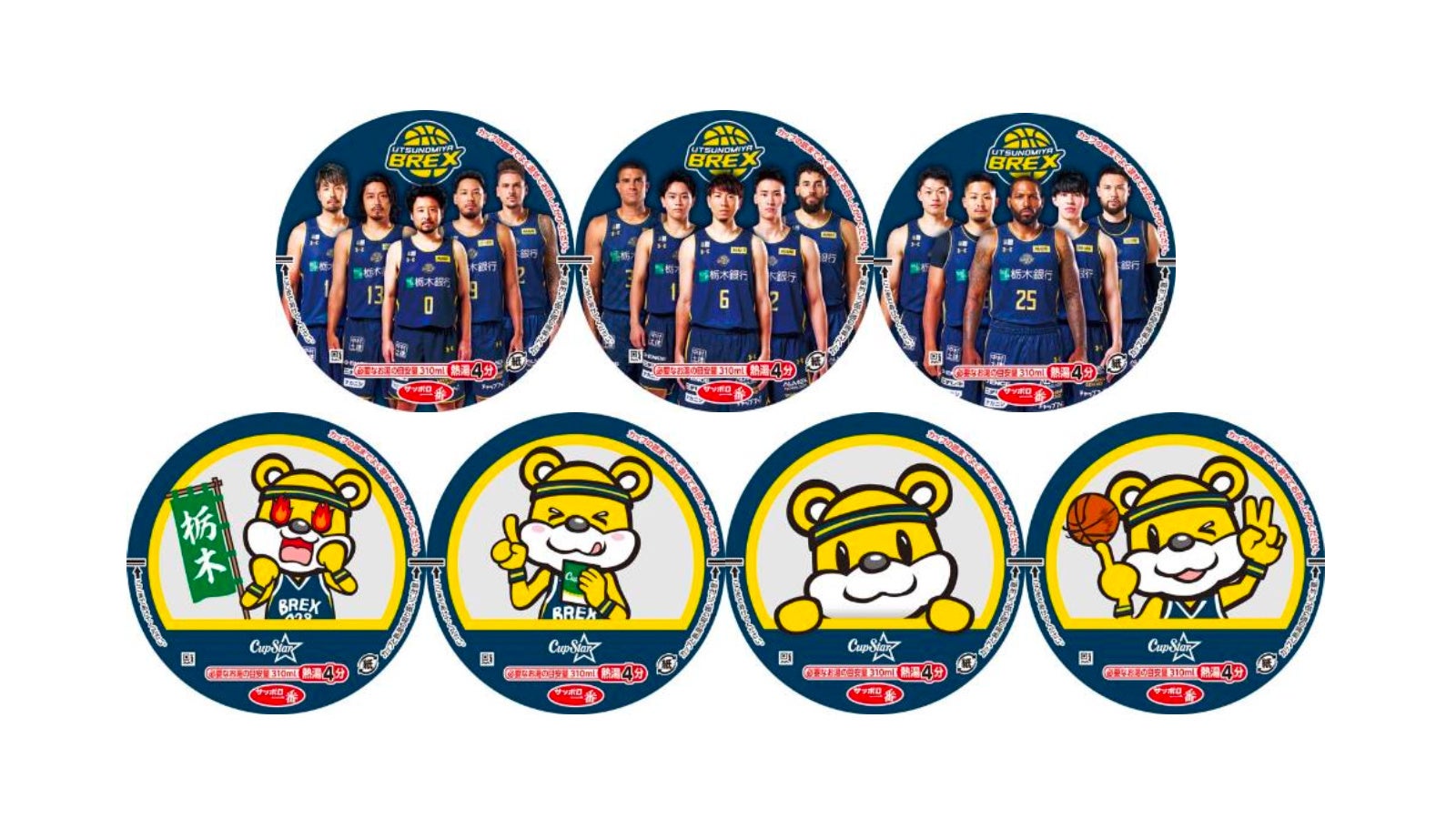 チキンに香味野菜の風味を合わせ、キレのあるしょうゆ味で整えた「栃木 佐野らーめん」のフタにブレックスの選手たちや#028ブレッキーなど計7種類のデザインが登場します。
