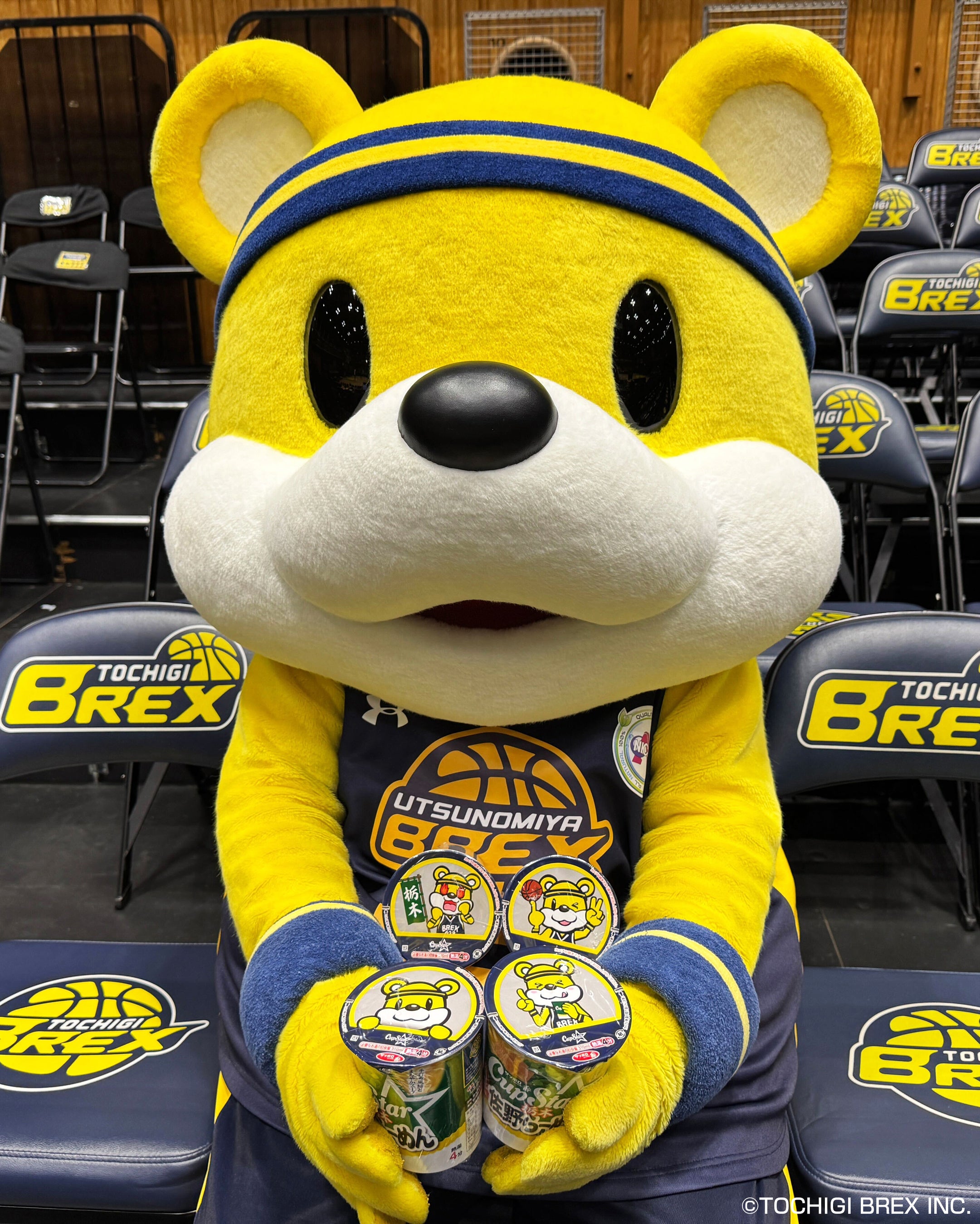 チキンに香味野菜の風味を合わせ、キレのあるしょうゆ味で整えた「栃木 佐野らーめん」のフタにブレックスの選手たちや#028ブレッキーなど計7種類のデザインが登場します。