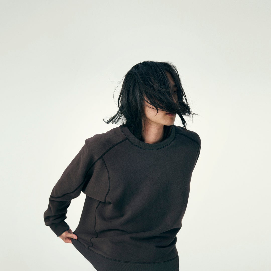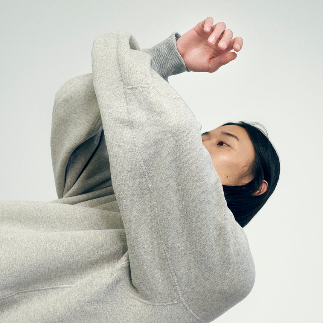 袖は、トレンチコートのように腕を上げやすいラグラン仕様で、肩の上にシームが来ないように接ぎ合わせることで、着心地の良さを追求。身頃はボリューム感を持たせ、スウェットと身体の間にゆったりとした「間」が生まれるようにしました。「レギュラーフィット」と「オーバーサイズフィット」の2種10サイズをご用意し、お好きなFitをお選びいただけます。(※店舗により異なる場合がございます)
