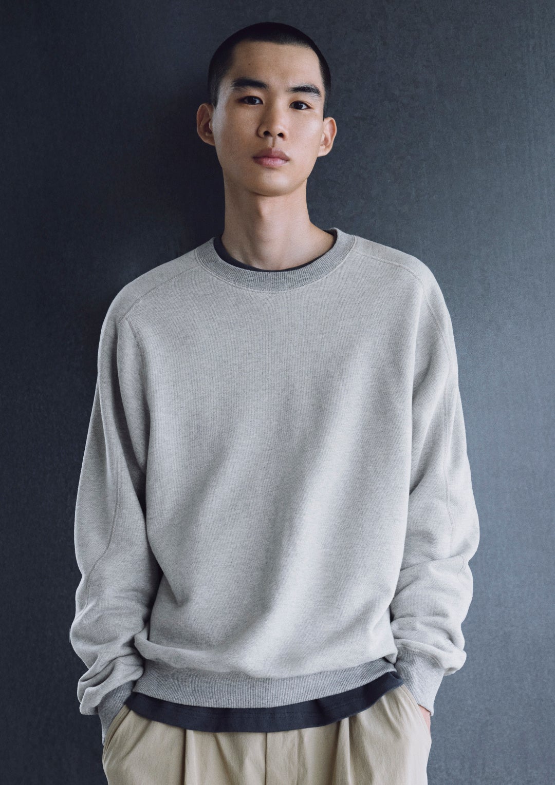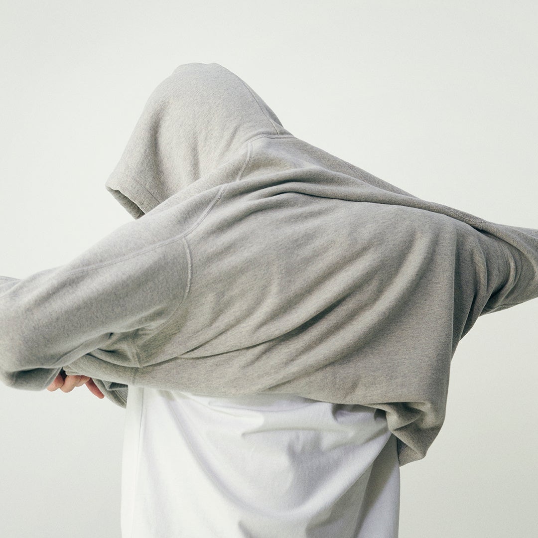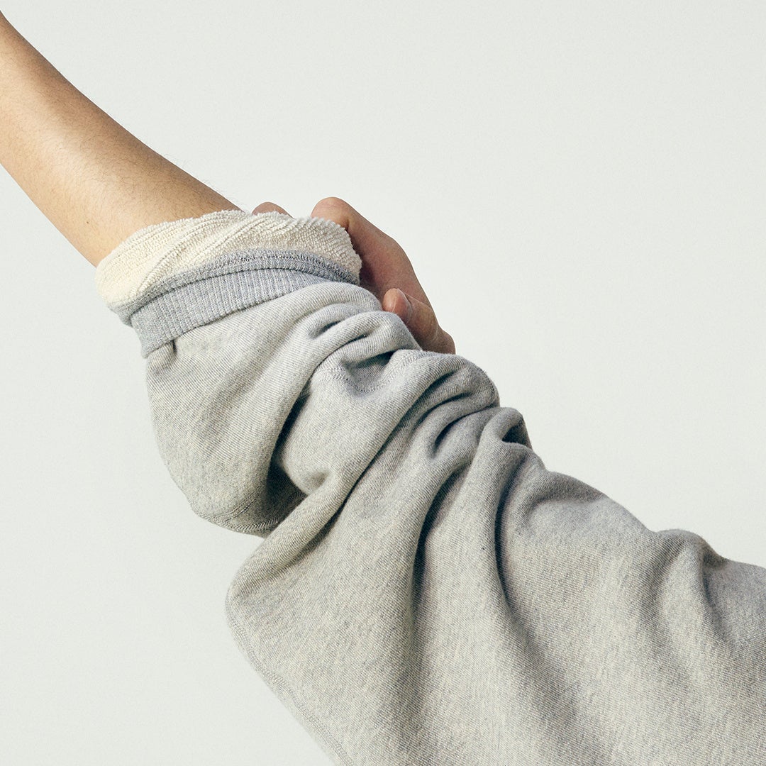 袖は、トレンチコートのように腕を上げやすいラグラン仕様で、肩の上にシームが来ないように接ぎ合わせることで、着心地の良さを追求。身頃はボリューム感を持たせ、スウェットと身体の間にゆったりとした「間」が生まれるようにしました。「レギュラーフィット」と「オーバーサイズフィット」の2種10サイズをご用意し、お好きなFitをお選びいただけます。(※店舗により異なる場合がございます)