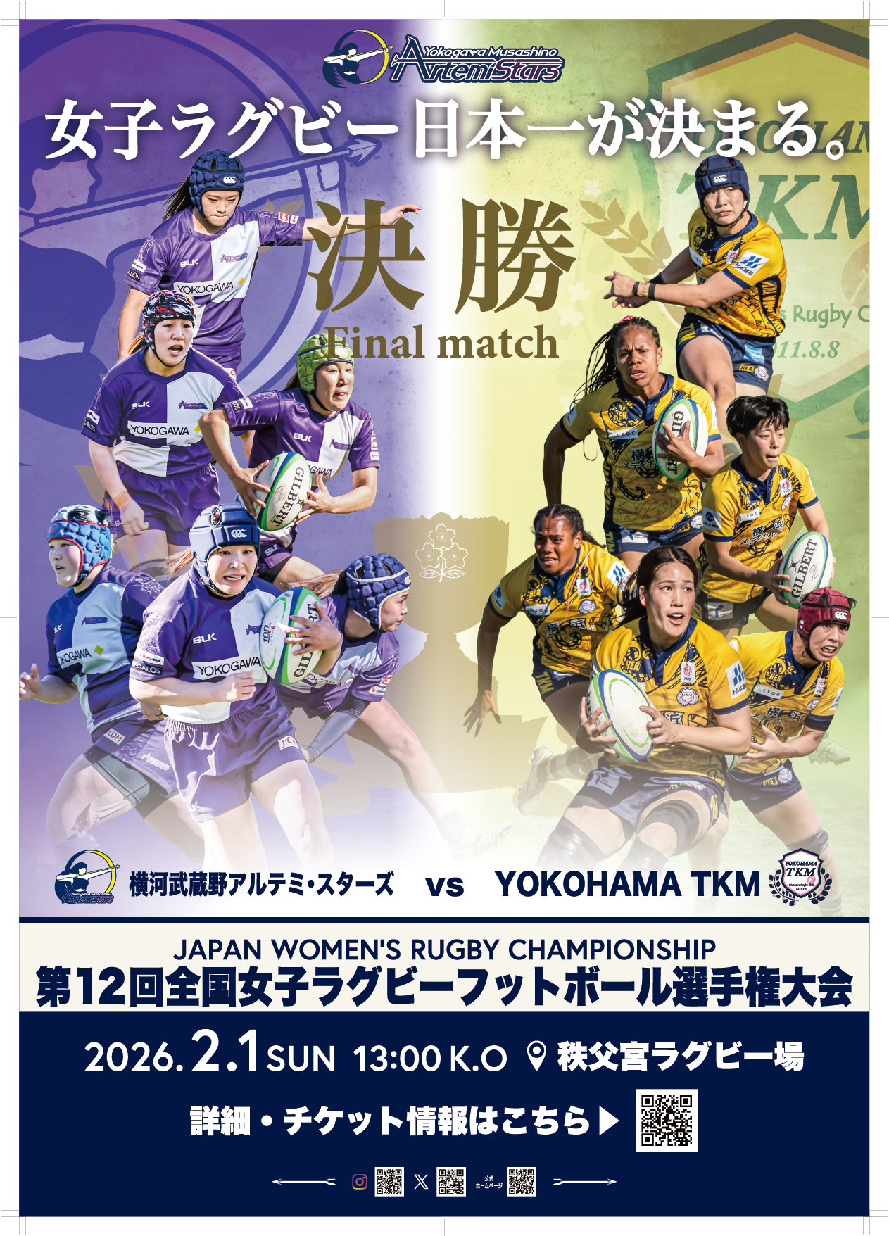 今大会、私たちは「王座奪還」という想いを胸に、秩父宮の舞台へ挑みます。アルテミ・スターズらしい激しく、ひたむきなラグビーを体現し、すべてを懸けて決勝戦を戦い抜く覚悟です。