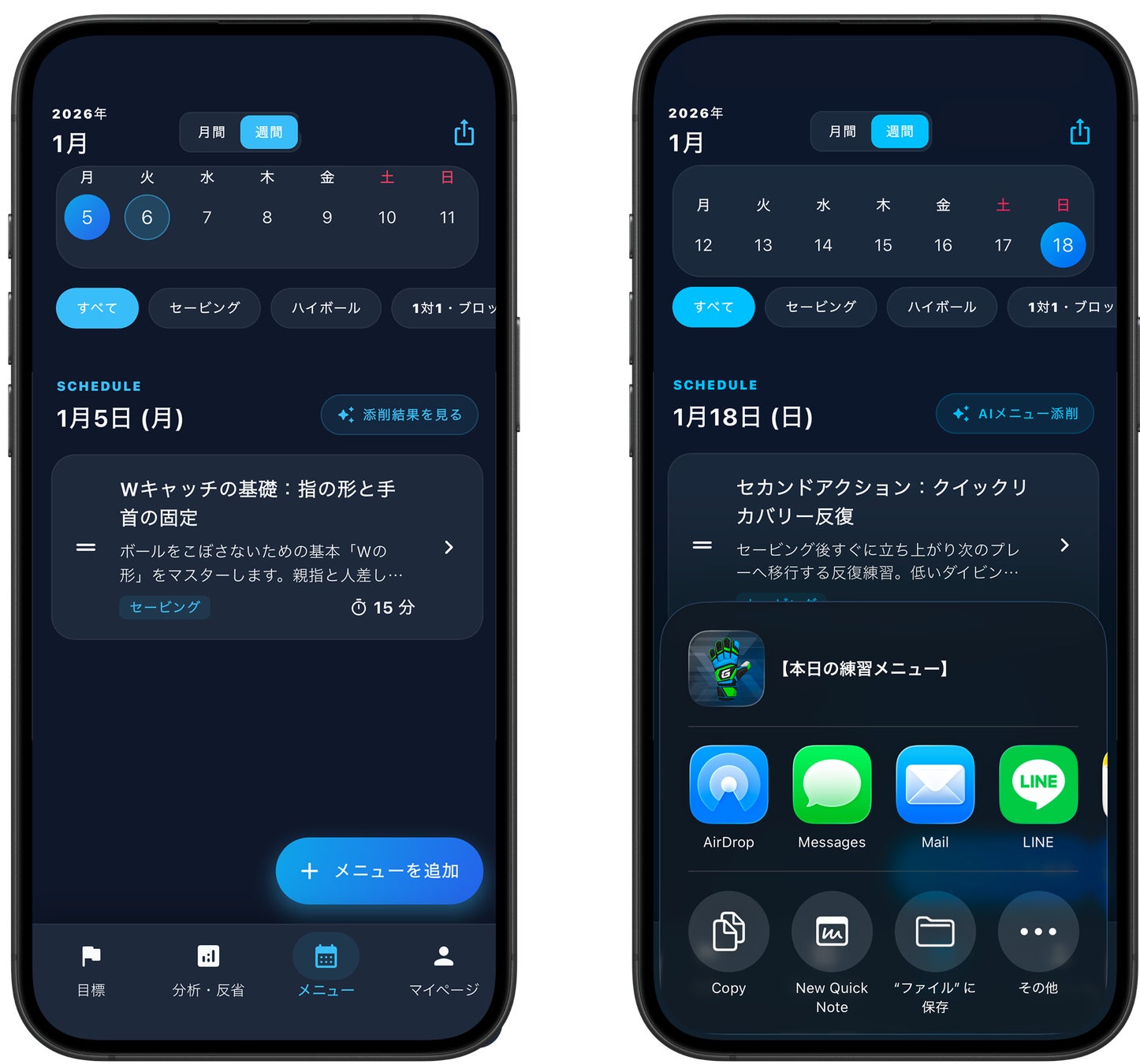 作成したメニューはLINE等で簡単にシェア可能なので、指導者による利用もおすすめです。